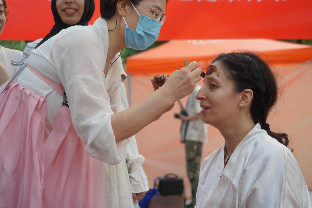 活动现场体验氛围热烈,留学生们表现出了浓厚的兴趣。来自越南的阮氏恒分享道,活动彻底改变了她对中医的印象:“以前总觉得‘阴阳’‘气’这些概念很玄妙遥远,但今天的草药辨识和艾灸体验让我亲身感受到它们是如何融入实际生活的!”来自摩洛哥的Fadwa则对活动带来的文化碰撞深有感触:“最震撼我的是中医‘平衡’的整体观。在摩洛哥,我们往往更关注症状治疗,而中医教会我们如何调和身心、顺应自然来维护健康。我非常有兴趣读更多书、参加更多活动来深入了解中医。”