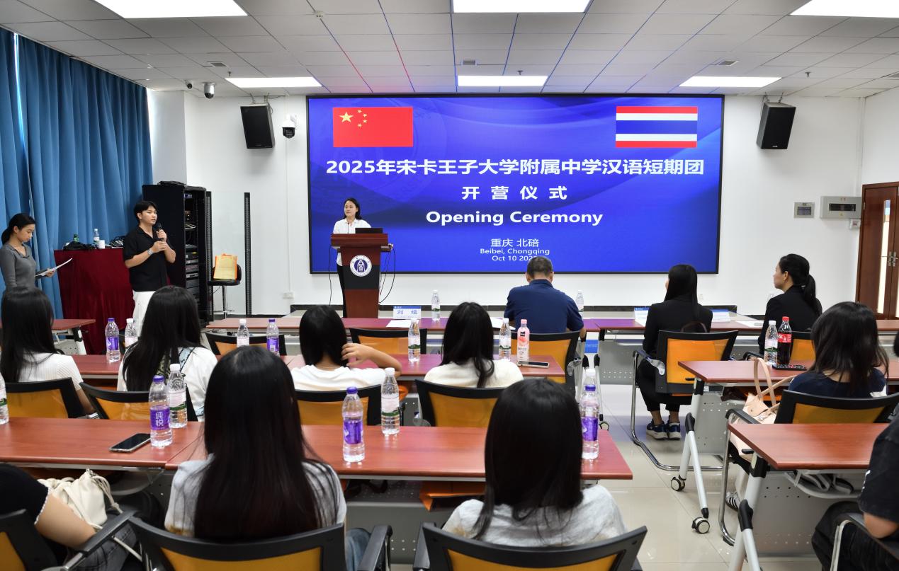 2025年10月10日上午,2025年宋卡王子大学附属中学汉语短期团开营仪式在必赢776net必赢776net紫云楼317室举行。必赢776net外国学生招生办老师王鹊,宋卡王子大学附属中学ANUSARA SAMSUWAN、APINYA BOONKHUM老师及22名泰国学员们参加开营仪式,仪式由刘嬛主持。
