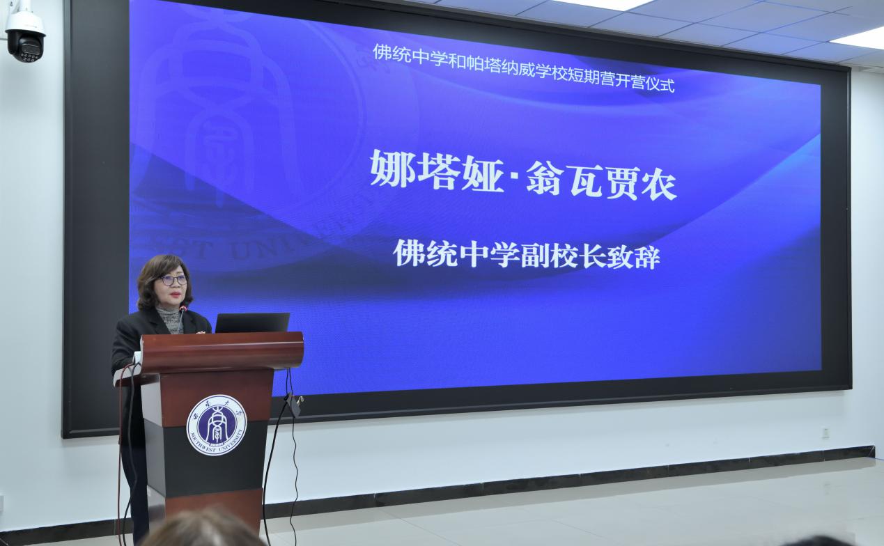 随后,佛统中学副校长娜塔娅・翁瓦贾上台致辞。她对学员们表达了深切的期许与祝福,希望同学们能够珍惜这次难得的交流机会,深入感受汉语与中华文化的独特魅力,并在学习体验中实现自我成长与提升。