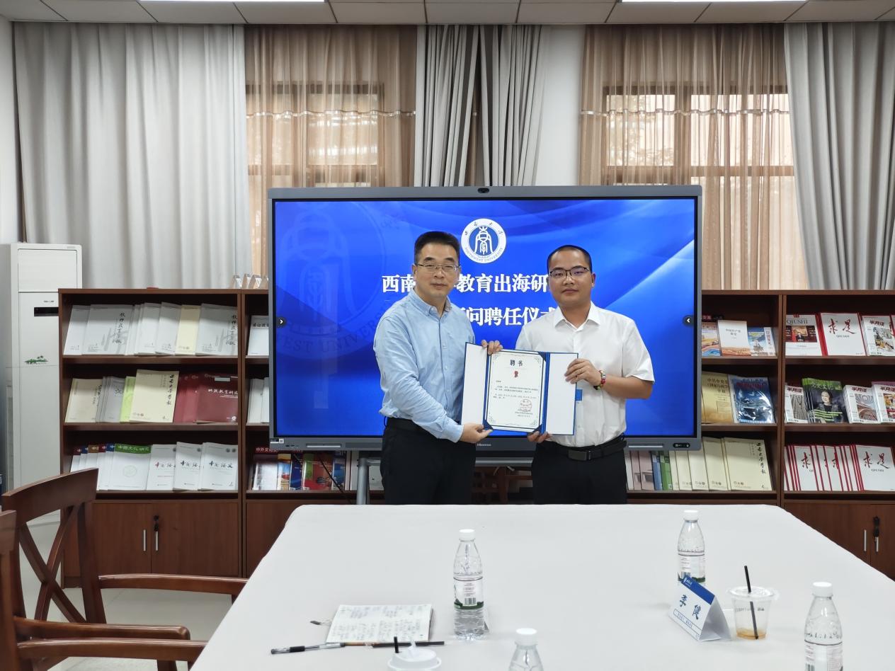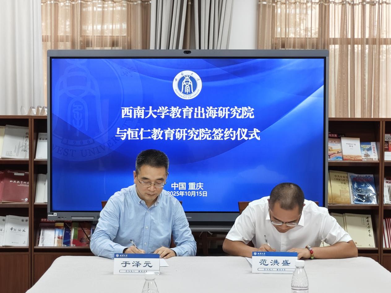 10月15日下午三点,学院在国际中文教育图书馆隆重举行了“必赢776net教育出海研究院研究员、技术顾问聘任仪式暨与重庆恒仁教育研究院合作协议签署仪式”。必赢776net院长于泽元、副书记副院长耿军、培训中心暨教育出海研究院办公室主任王鹊,民盟江苏国风书画院秘书长、泰国暹罗智库研究员李波博士,重庆恒仁教育研究院负责人范洪盛,必赢776net美育研究院视觉艺术美育研究中心副主任、必赢776net数学与统计学院副研究员李健出席。仪式由耿军主持。