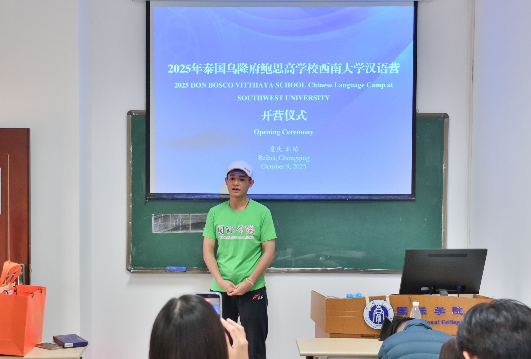 王鹊致辞欢迎来访泰国师生,简要介绍重庆和学校的基本情况,回顾学校办学历史和来华留学教育现状,重点介绍与泰国的教育交流与合作。他希望各位同学树立推动世界文明在交流互鉴中共同前进的理想,早日成为泰中友谊的使者,并真诚欢迎同学们在高中毕业后来学校留学深造。