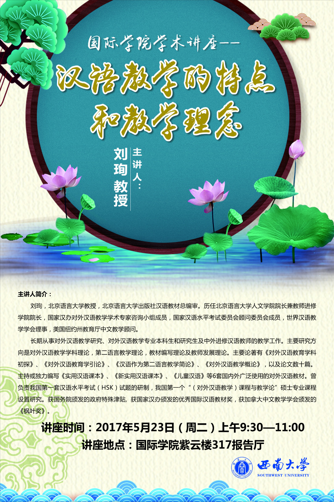 讲座时间:2017年5月23日(周二)上午9:30—11:00