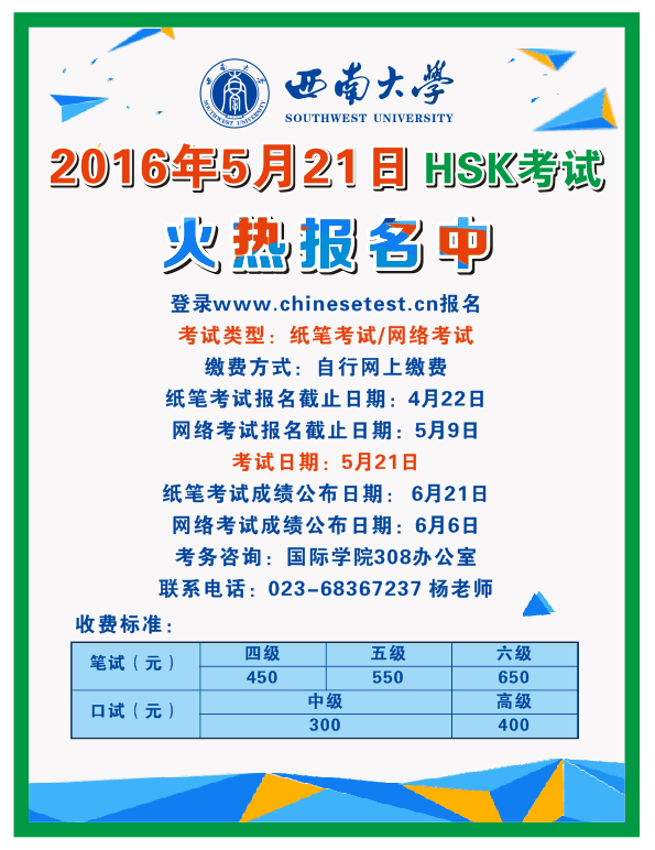 上一篇:2016年6月12日HSK考试报名通知