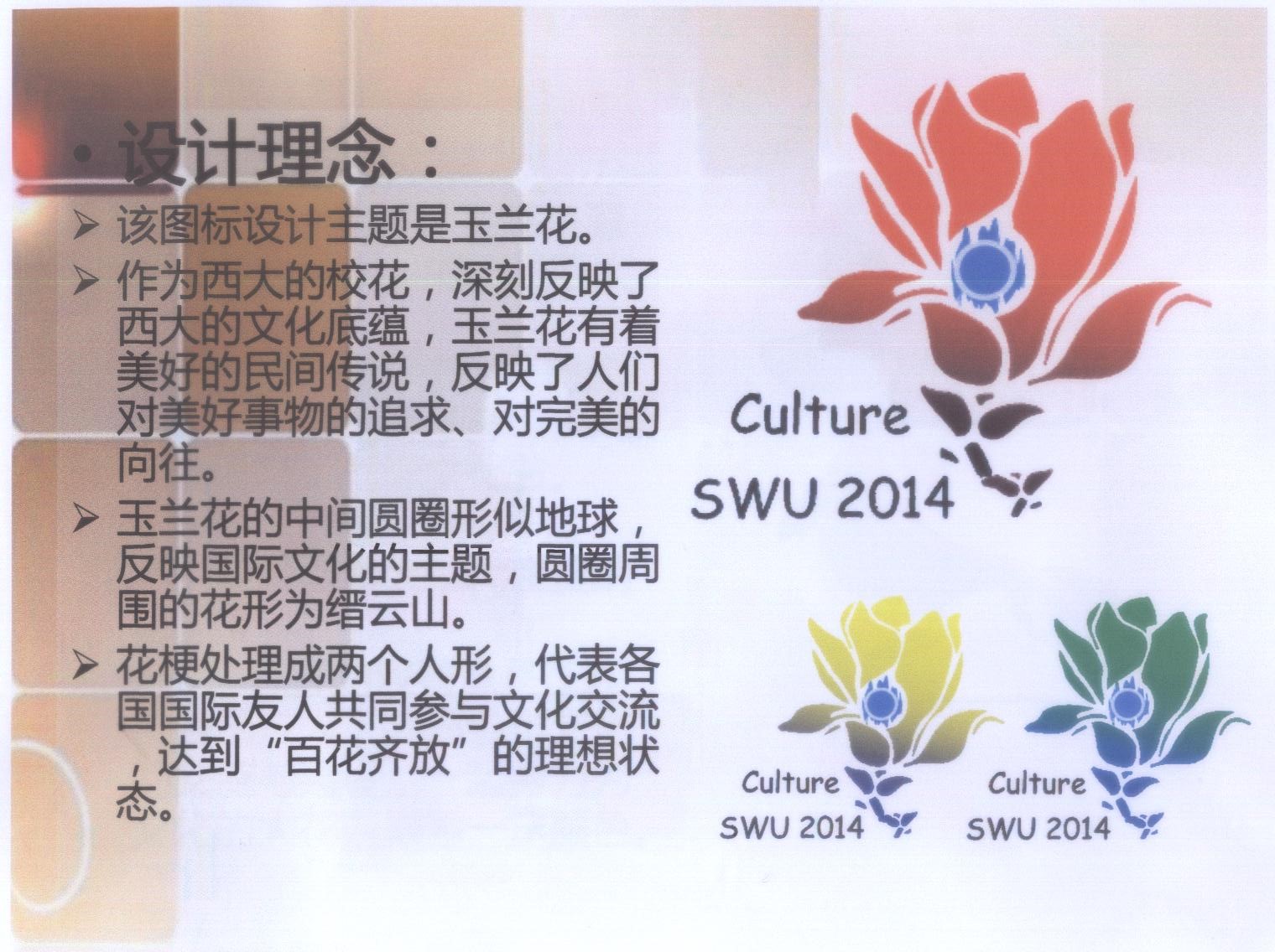 为促进中外文化交流,拓宽国际视野,我院于10月23日至11月11日面向校内外有奖征集必赢776net国际文化节主题、吉祥物及图标,受到了全校师生及广大校友的广泛关注,共收到校内外作品300余份。本着“公平、公正、公开”的原则,严格按照“主题设计寓意深刻,创意独特,能够反映国际文化节的特色与内涵;吉祥物及图标设计新颖,简洁明快”等设计要求,经评选委员会专家评审,现将录用及入围作品公布如下: