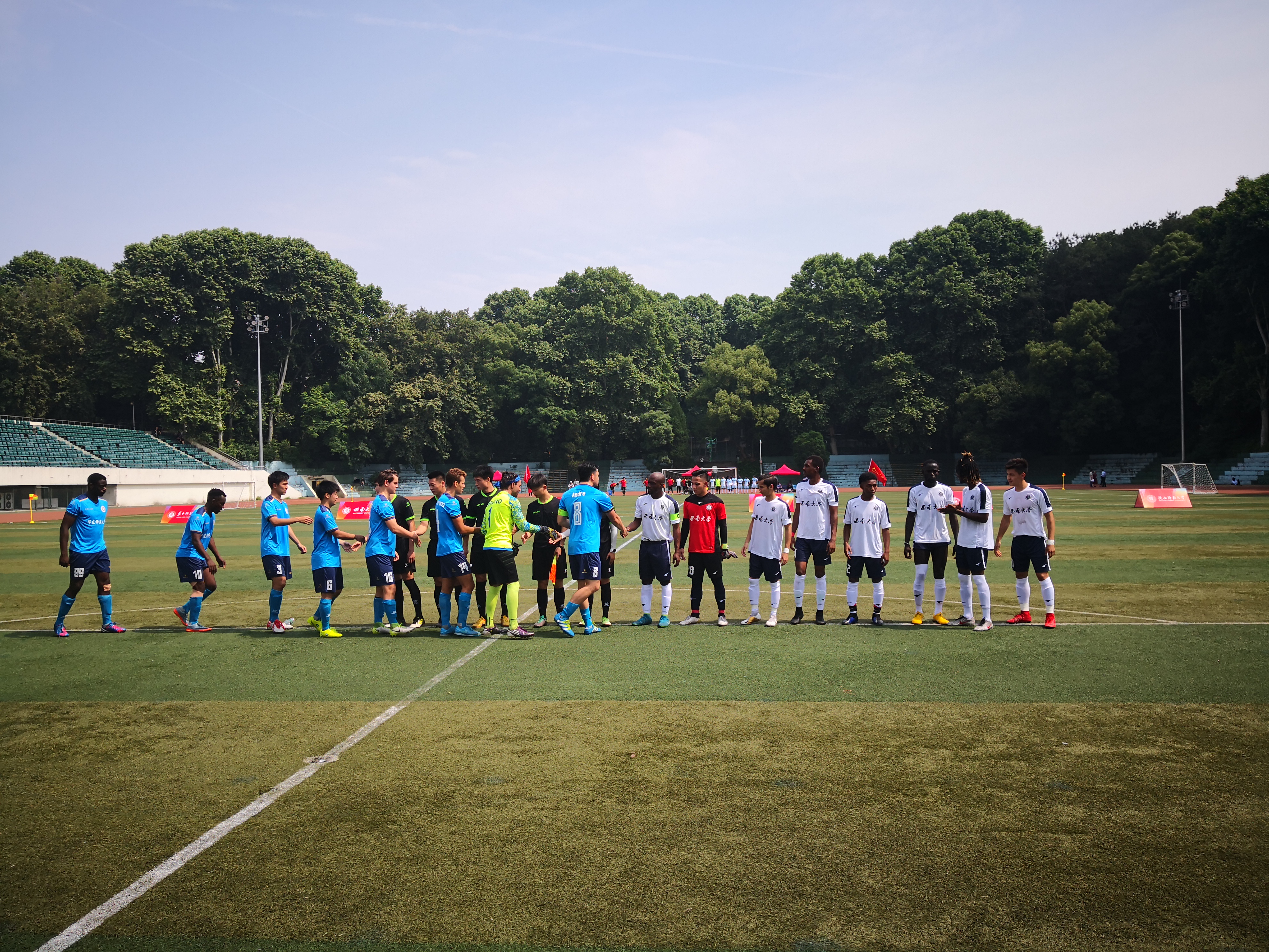 5月24日,第四届部属师范大学国际学生足球联赛在华中师范大学开幕,来自北京师范大学、华东师范大学、华中师范大学、东北师范大学、必赢776net和陕西师范大学共计80余名足球运动员展开绿茵场激烈角逐。