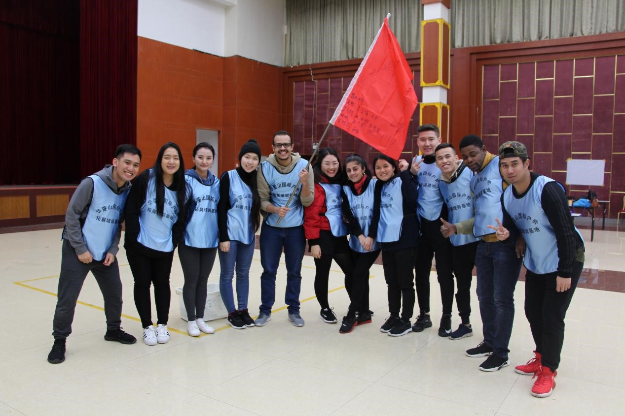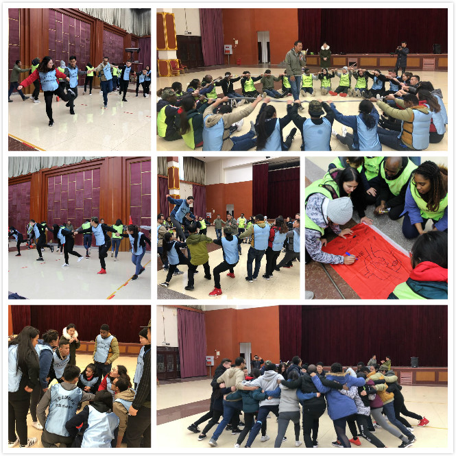 下午,大家来到广安华蓥山素质拓展营,开始了主题为团队和个人的团队建设活动。活动以热身游戏拉开序幕。首先通过两个互动游戏“钥匙传递”和“限时击掌”让国际学生们分别体会到团队精神和自我挑战。随后训练营的老师通过开展“摸颜色” “挑战动力圈”等一系列活动,在活动中促进彼此的沟通与合作,加强团队凝聚力。