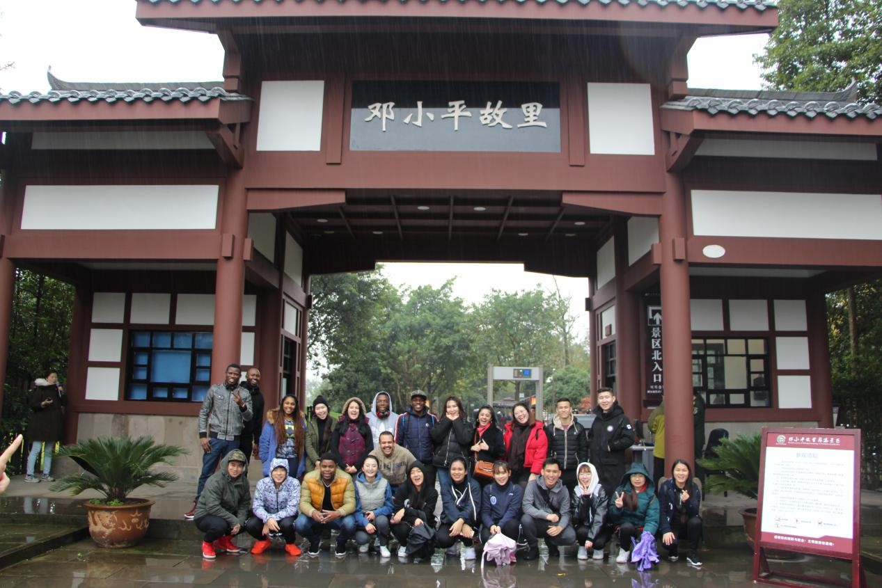 当天上午,经过2个小时的车程,大家到达了第一站—邓小平故居。漫步在邓小平故里主游道,四周绿树环抱,青石板铺成的小路整洁美观。学生会的干部们矗立在小平铜像前,眼前的这位老人睿智而慈祥地看向前方,谁也不知道他在思考着什么。但是大家能强烈的感受到伟人的独特魅力及风采。深入走进邓小平故居及邓小平故居陈列馆,同学了解到国家领袖邓小平是改革开放的总设计师,也进一步了解邓小平波澜壮阔的人生历程和不可磨灭的历史功绩。此次参观一代伟人的故居,缅怀伟人,使留学生会干部们更加了解了中国的国情,感受到了中国改革开放以来四十年的巨变。