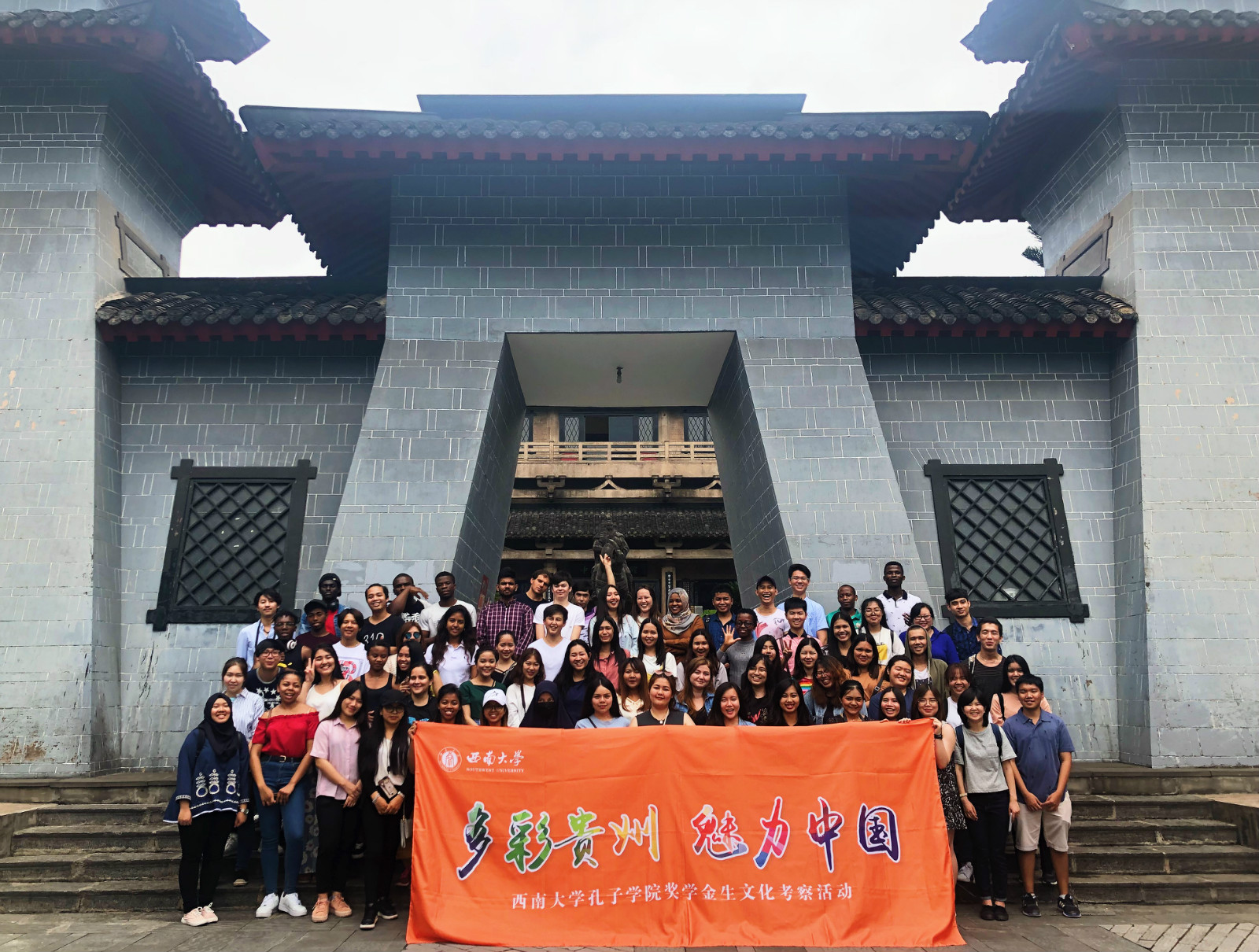 学校孔子学院奖学金生 “多彩贵州—魅力中国”文化考察活动于5月25-27日举行。在为期两天的活动中,来自泰国、印度尼西亚、马达加斯加、墨西哥、喀麦隆等国的70名孔子学院奖学金生来到了位于赤水河畔的贵州省仁怀市,参观了坛厂神采八卦园、茅台中国酒文化城、中国酒都酱酒文化纪念馆及四渡赤水纪念园,从特色产业、苗族文化、中国历史等多方面进行了感知体验,对中国文化形成了更加深刻、全面的认识。