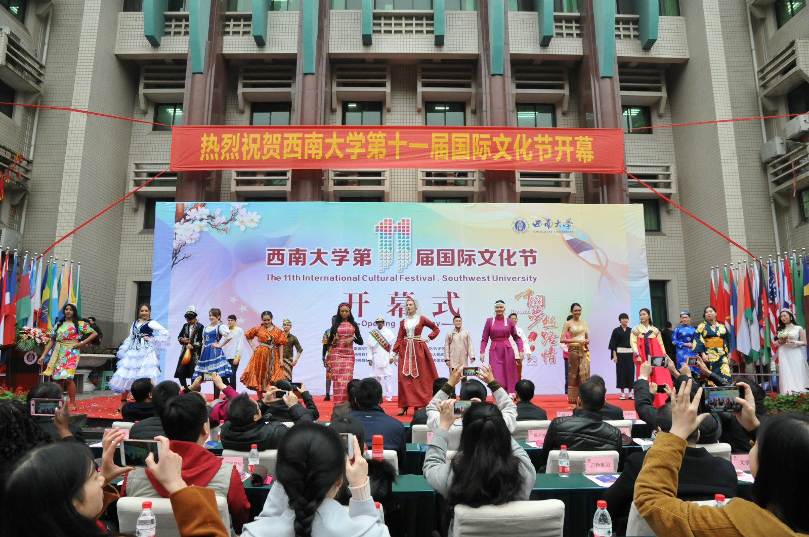 开幕式上,20余个国家的国际学生联袂献上了精彩的歌舞表演、古筝弹奏及华丽的民族服装秀。副校长靳玉乐教授为文化节致辞,祝福文化节顺利举办。教师代表杨甜及来自刚果(布)的国际学生代表思拉河分别发言,对文化节的开幕表示祝贺。