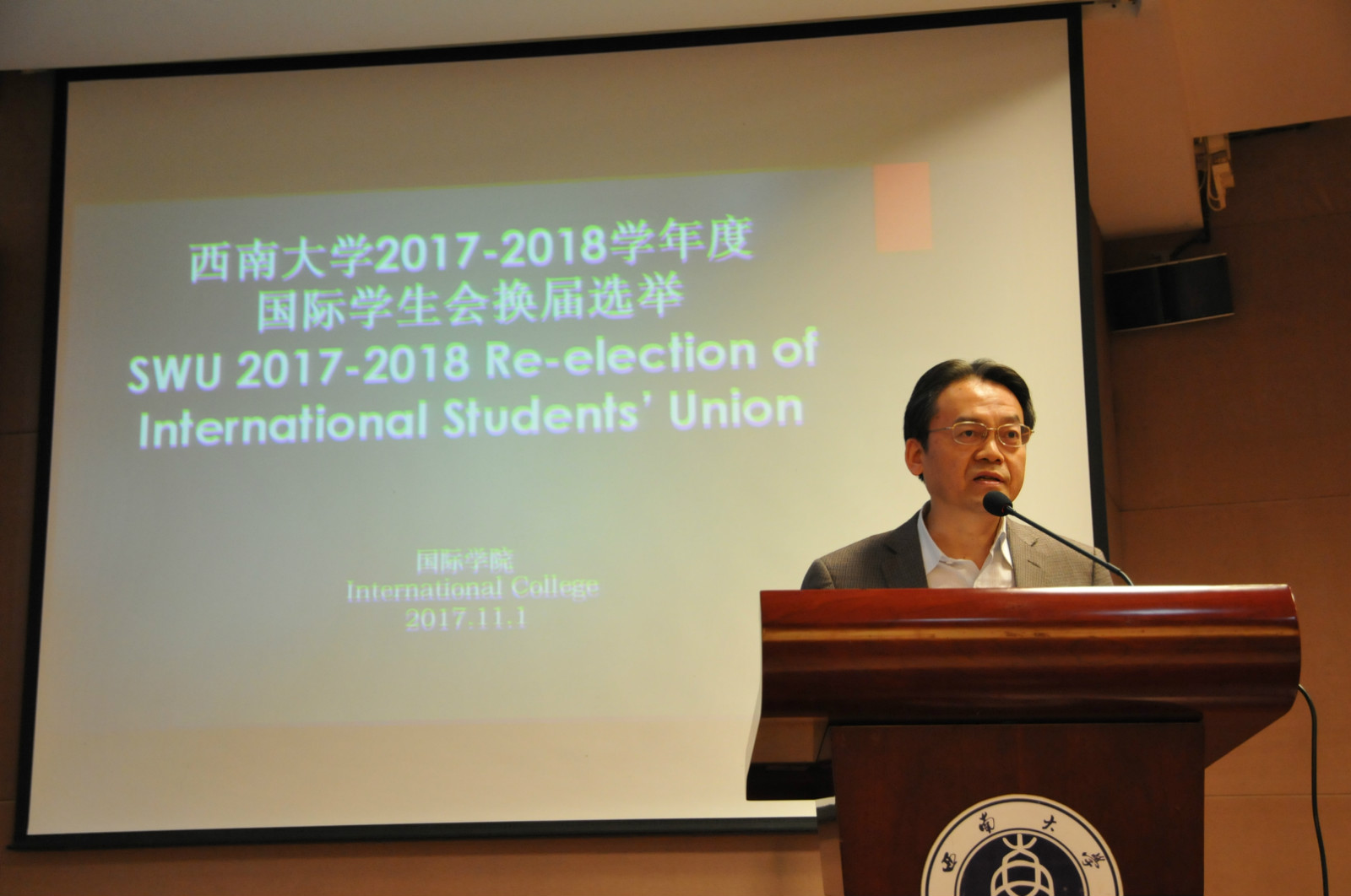 刘猛书记首先致辞,肯定了上届国际学生会的工作成绩,并预祝本次选举圆满成功,期待新一届国际学生会成员更加努力进取,工作更上一层楼。