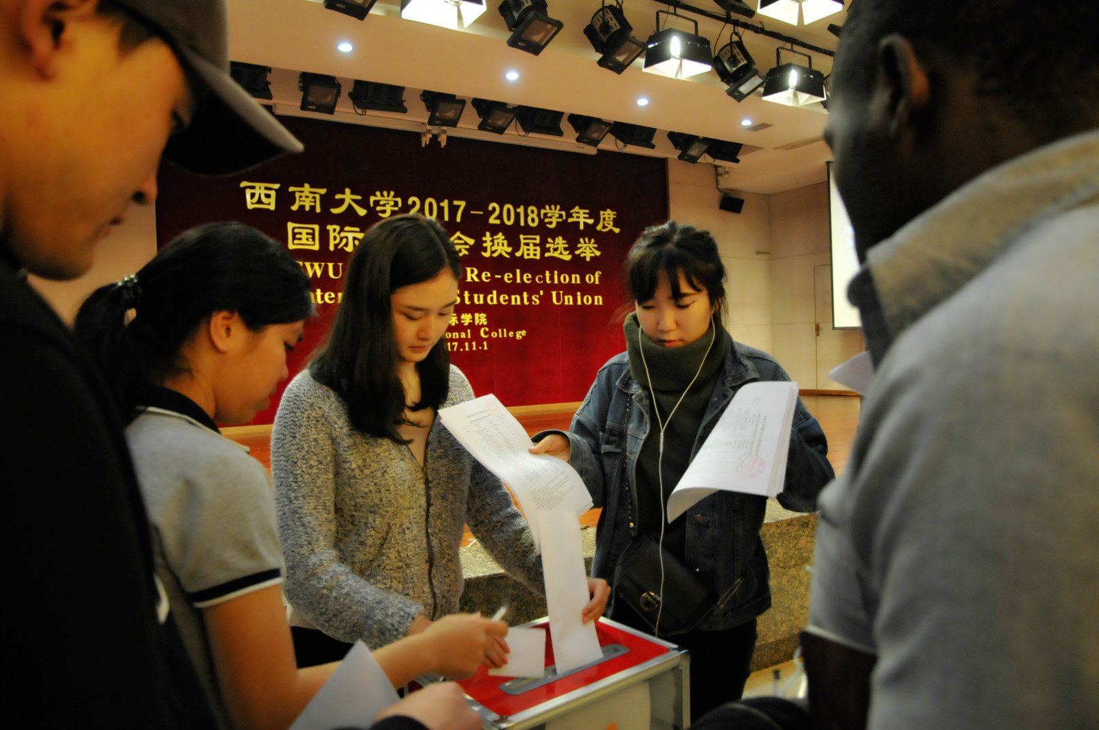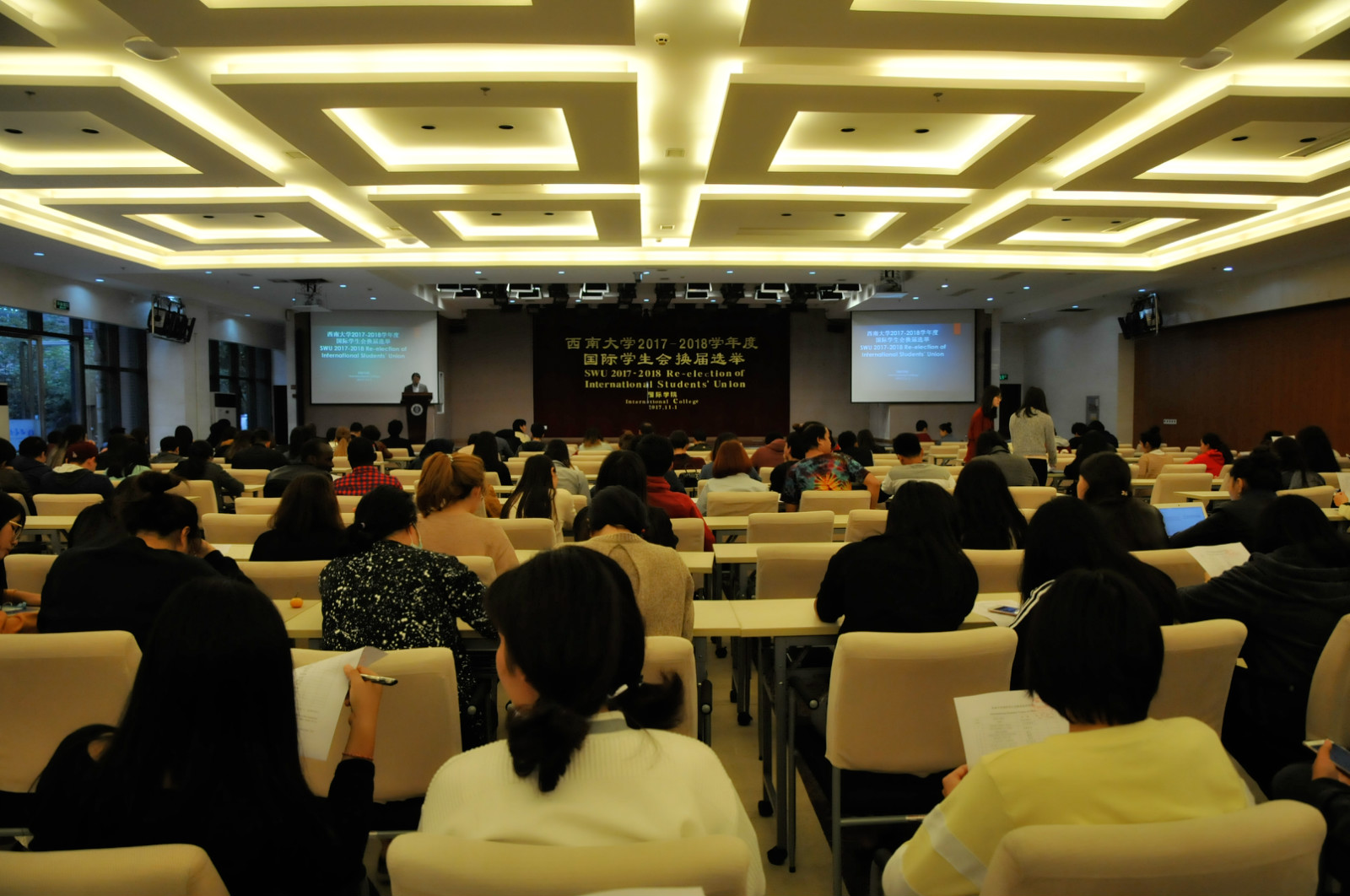 11月4日下午四时三十分,2017-2018学年度必赢776net国际学生会换届选举大会在必赢776net报告厅举行。来自12个国家的19名候选人就新一届国际学生会的主席、副主席和秘书等职位展开竞选。必赢776net党总支书记刘猛,学院学生工作办公室老师及全校300余名国际学生参加选举会。
