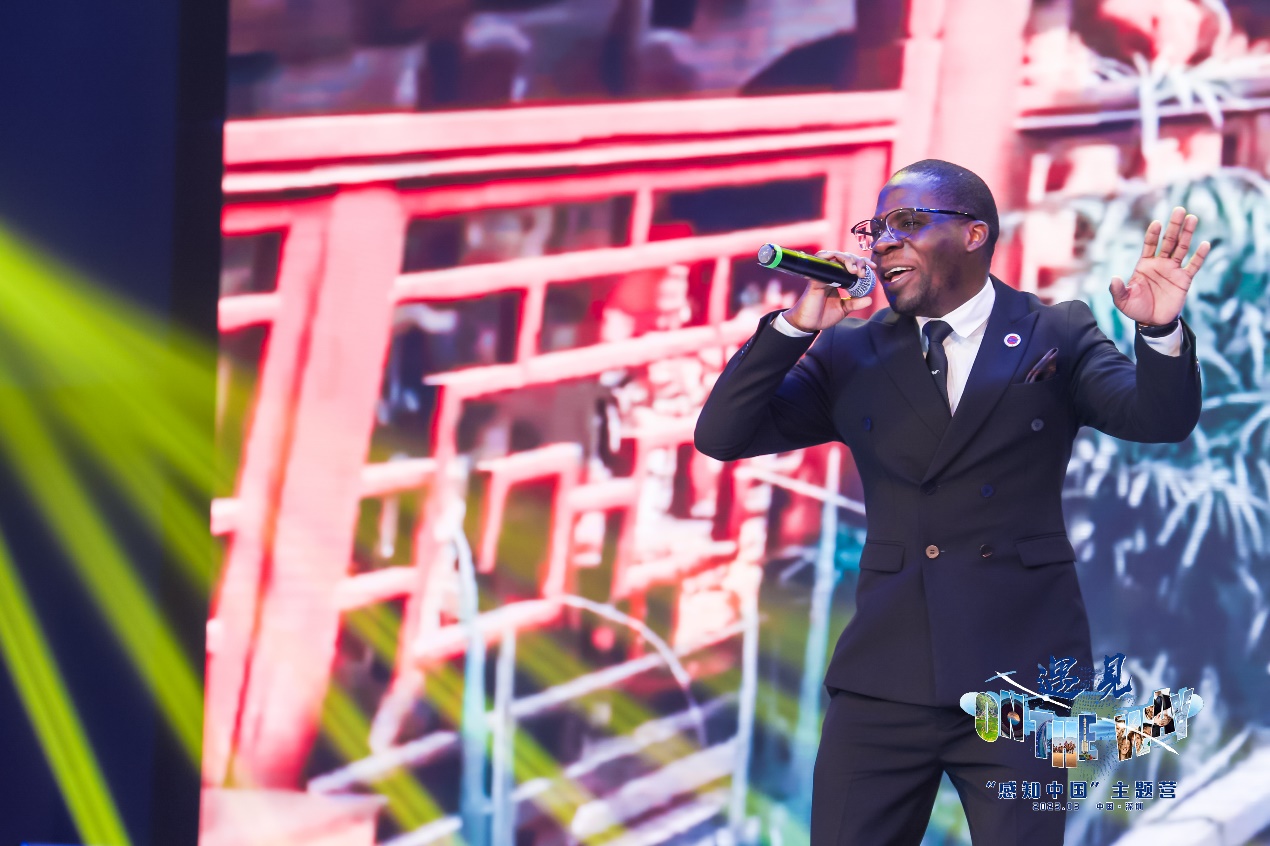 开营式上,浙江省教育厅、沈阳师范大学和北京理工大学分享组织“感知中国”活动的经验,来自北京大学等九所高校的中国政府奖学金生通过访谈、演讲、舞台剧、说唱、歌舞等形式展示他们在“感知中国”活动过程中所感、所悟和所得,学校赞比亚籍学生格福特倾情演唱原创歌曲《China will rise》《Shared Future》,掀起全场高潮。随后,出席开营式的嘉宾向参与分享的国际学生们颁发“感知中国”宣传大使证书。开营典礼结束后,赞比亚籍学生格福特向与会嘉宾赠送其新创作的音乐专辑《东行漫曲》。