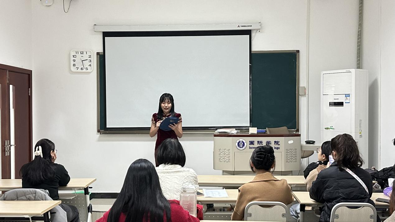 217教室由冯雪和罗昕老师担任评委,共30名来自不同国家的学生参赛。选手们用自己的故事讲述了来华留学的原因,真是各有其妙:热爱中国美食,如重庆的火辣、广东的鲜香等;热爱中国文化,如茶艺、书法、武术等,来中国学习的愿望从小就扎根于心;受家庭影响,从小接受华文教育,长大后也选择来到中国生活……在朗诵环节,选手们自选的中国文化作品也创意无限,从花木兰、还珠格格到一人分饰三角的白蛇传,内容丰富多彩,讲述情真意切,诵读动人心弦,充分展现了各位选手出色的汉语表达能力以及对中国文化的理解和认识。