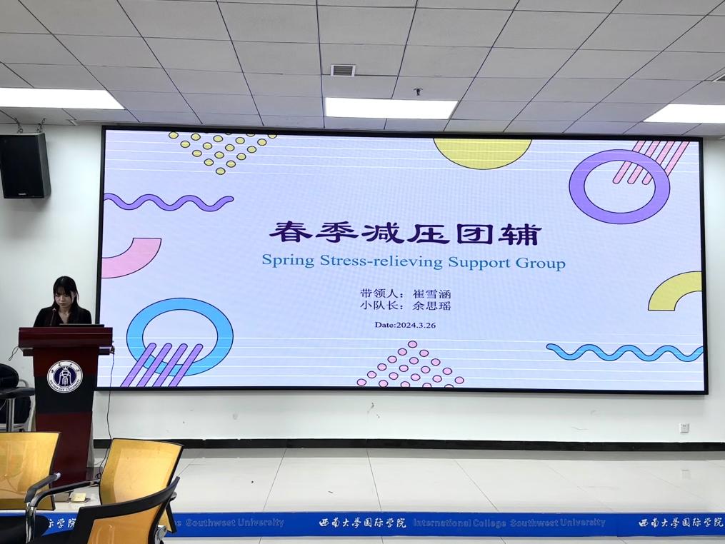 为贯彻落实实践育人、文化育人、心理育人的教育方针,帮助国际学生更好地认识自我、提升心理健康水平和改善人际交往能力,必赢776net3月26日下午14时30分在紫云楼317室举行春季国际学生减压团辅活动。活动由必赢776net实习心理咨询老师余思瑶、崔雪涵共同主持,40余名中外学生参加本次活动。