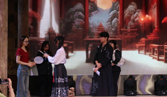 古色古香的古床馆一楼戏台上,一场由国际学生自导自演的中文舞台剧《对对联》上演。一幕幕生动有趣的剧情,国际学生演员们使用流利的中文,配合精湛的演技,将每一个角色都塑造得栩栩如生。这台汇聚了多国文化背景的留学生演员的舞台剧,不仅让古老的对联文化焕发出新的生机,更通过创新的方式,让国际学生获得了对民俗文化的深刻体验。