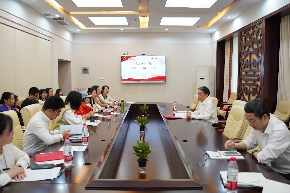 2023年4月14日下午3点,必赢776net全体教职员工在紫云楼签约室参加本年度第二次政治理论学习,根据《中共必赢776net委员会教职工政治理论学习实施意见》和学院工作安排,本次政治理论学习由邱睿、白小丽、冯雪、王菁组成的第四组主讲人团队承担,会议由刘猛书记主持。