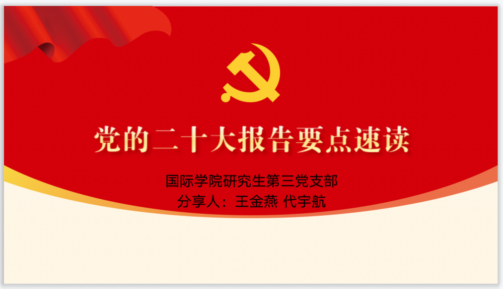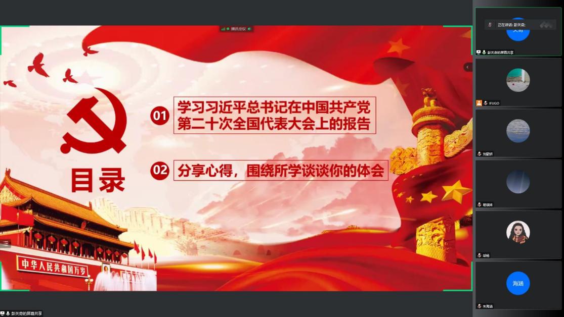2022年10月21日15:30,研究生第三党支部通过腾讯会议召开关于“学习领会党的二十大精神”的主题党日活动。