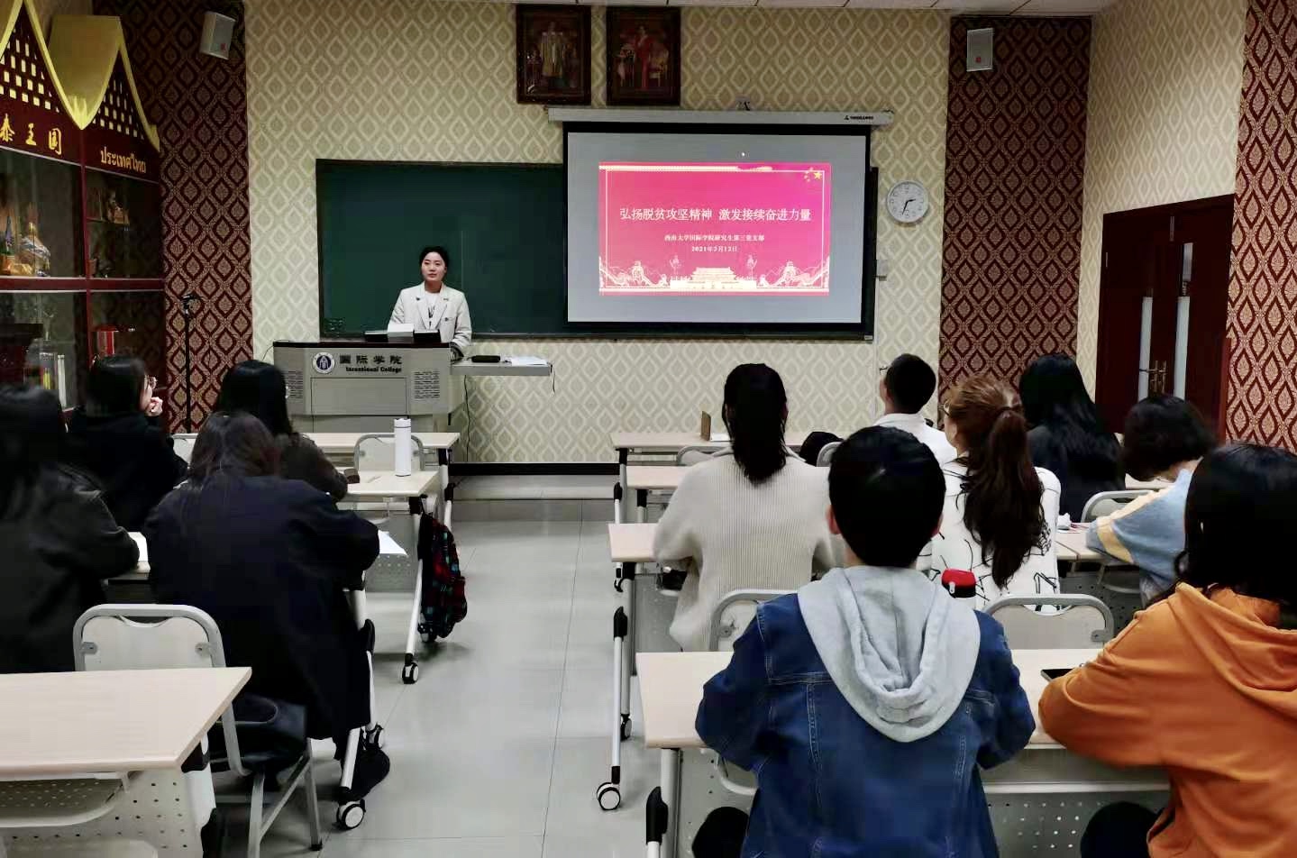 3月12日下午2:30,研究生第三党支部在紫云楼210教室开展了主题为“弘扬脱贫攻坚精神,激发接续奋进力量”的党日活动。