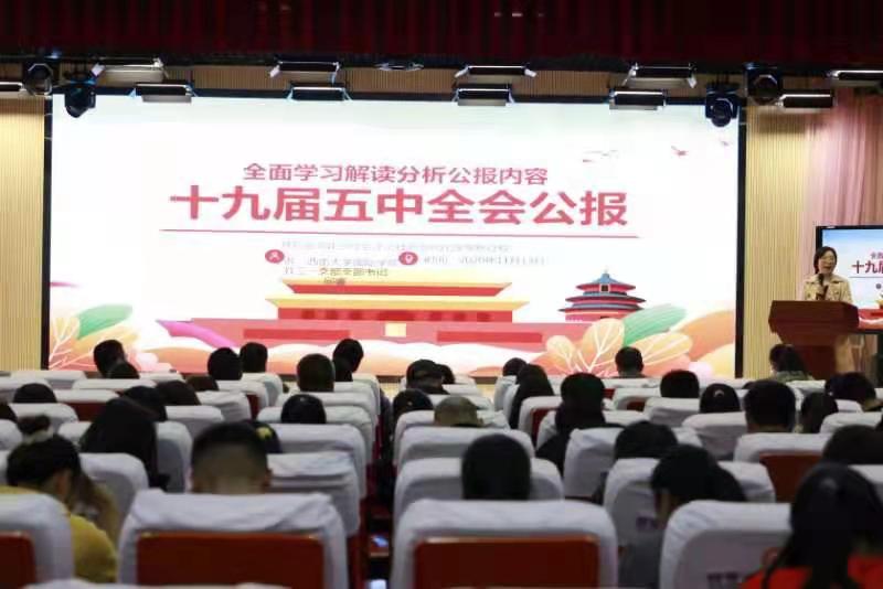 景柯沥书记为大家深入解读十九届五中全会会议内容及会议精神,指出,《建议》为今后5年乃至15年中国经济社会发展指明了方向、勾画了蓝图。在座党员同志纷纷表示要更加坚定走中国特色社会主义道路,做好自己应该做好的事情,为实现“两个一百年”奋斗目标、实现中华民族伟大复兴中国梦奋勇前行。