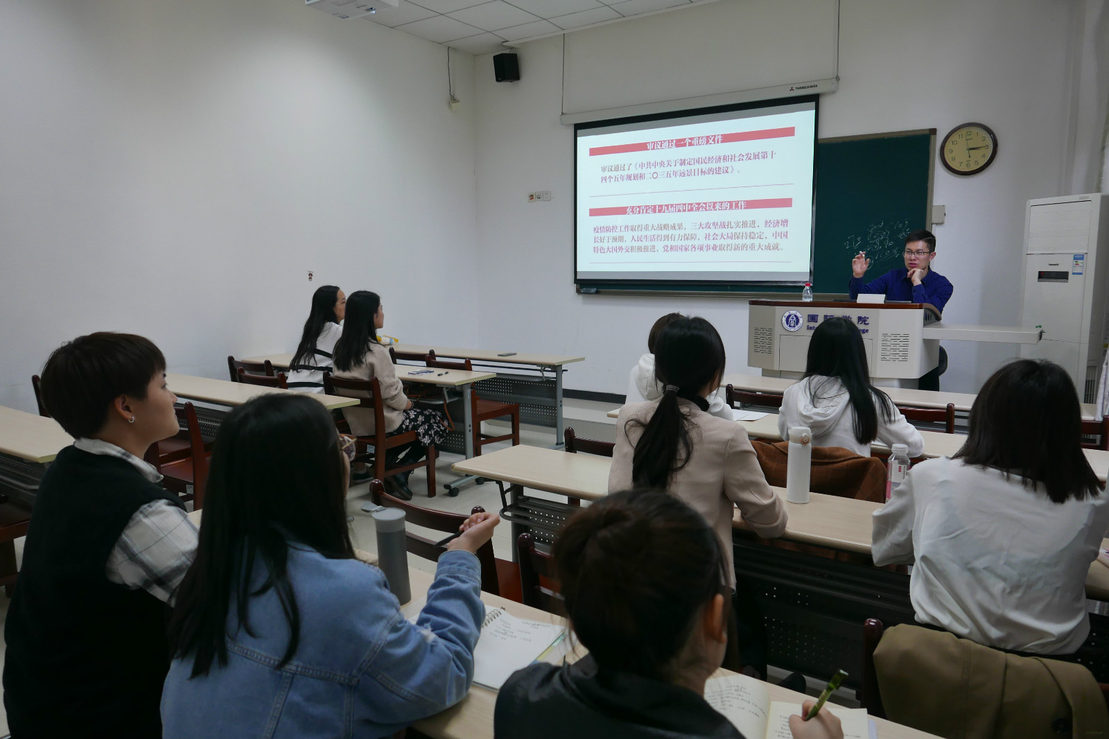 11月13日下午3点研究生第三党支部在紫云楼210教室,通过支部书记交叉讲党课的方式开展“学习贯彻党的十九届五中全会精神”为主题的的党日活动。