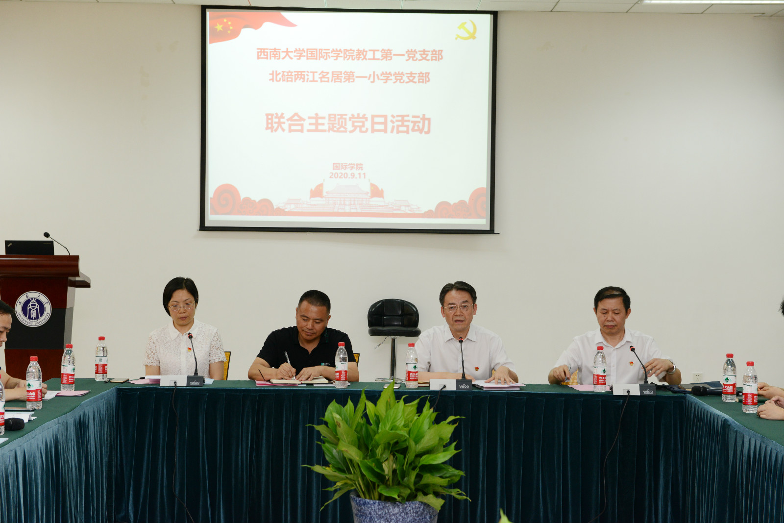 2020年9月11日下午3:00,必赢776net教工第一党支部与北碚两江名居第一小学党支部在必赢776net317室联合举办主题党日活动,双方共计36名党员参会,会议由支部书记邱睿同志主持。