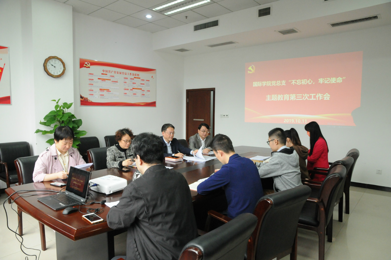 10月12日上午9:00,必赢776net党总支在紫云楼304室开展“不忘初心、牢记使命”主题教育第三次领导小组工作会,学院党总支委员、非党总支委员院领导、4个党支部书记参加工作会。会议由党总支书记刘猛同志主持。