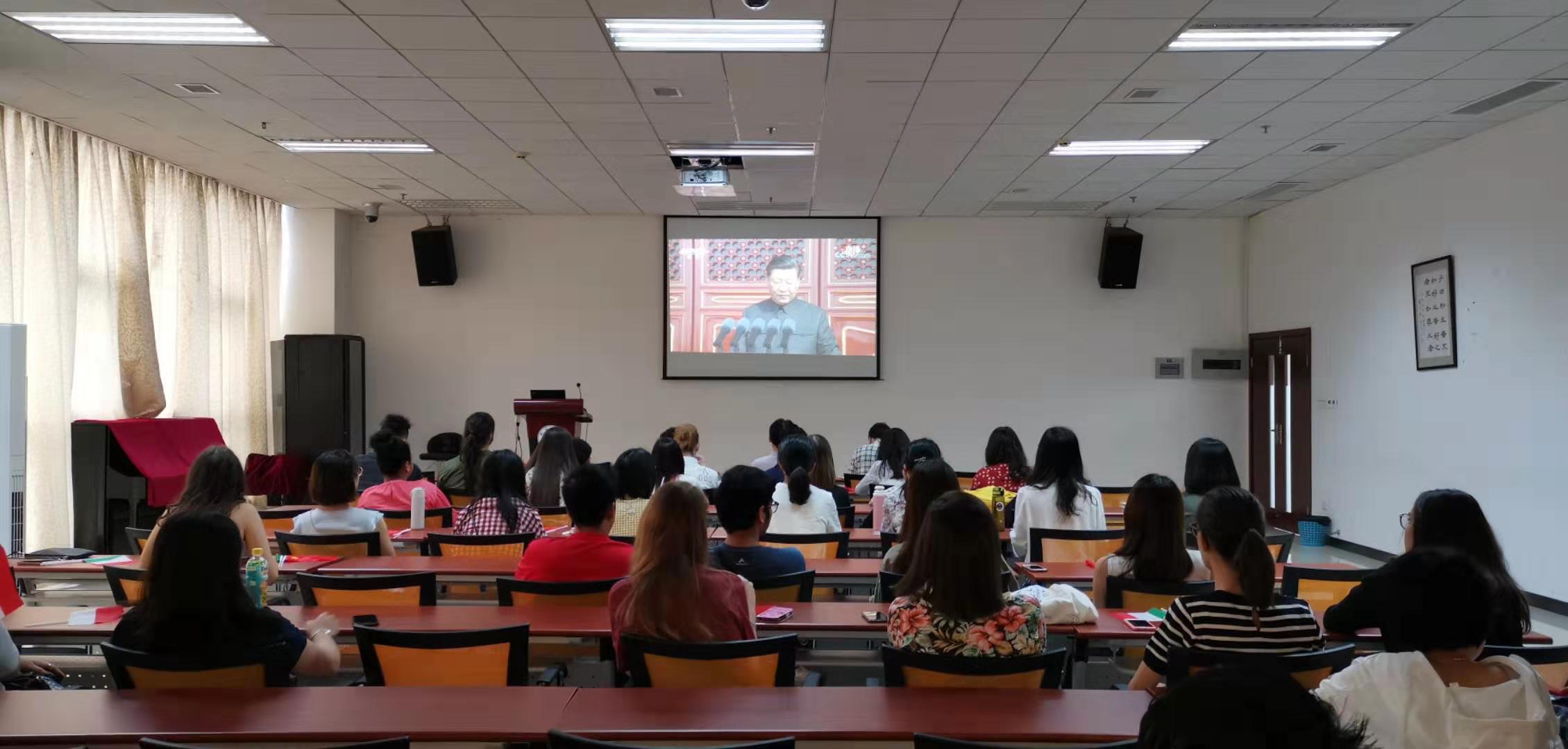 2019年10月1日上午,必赢776net的中外师生齐聚紫云楼317室,一同观看了中华人民共和国成立70周年庆祝大会现场直播。