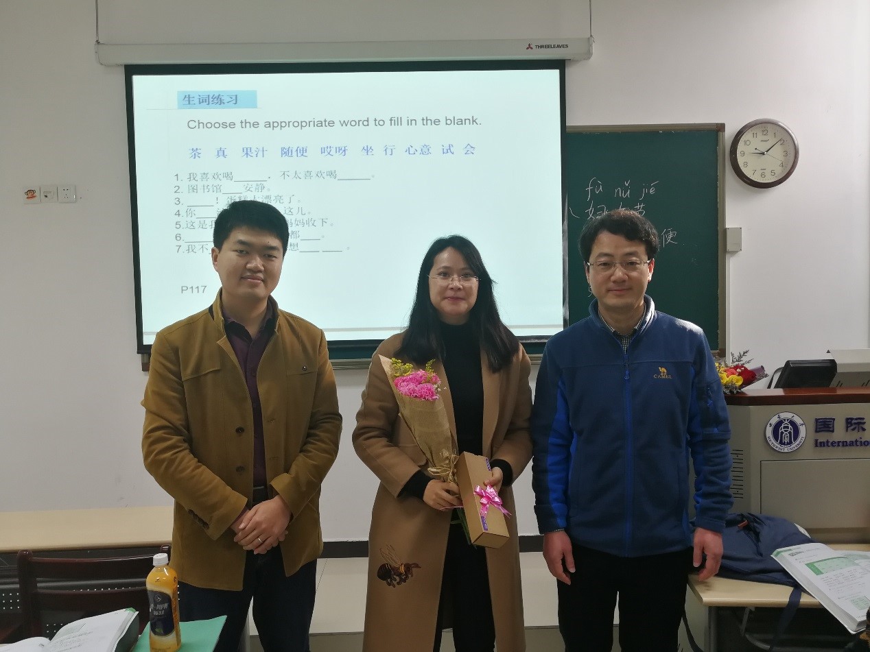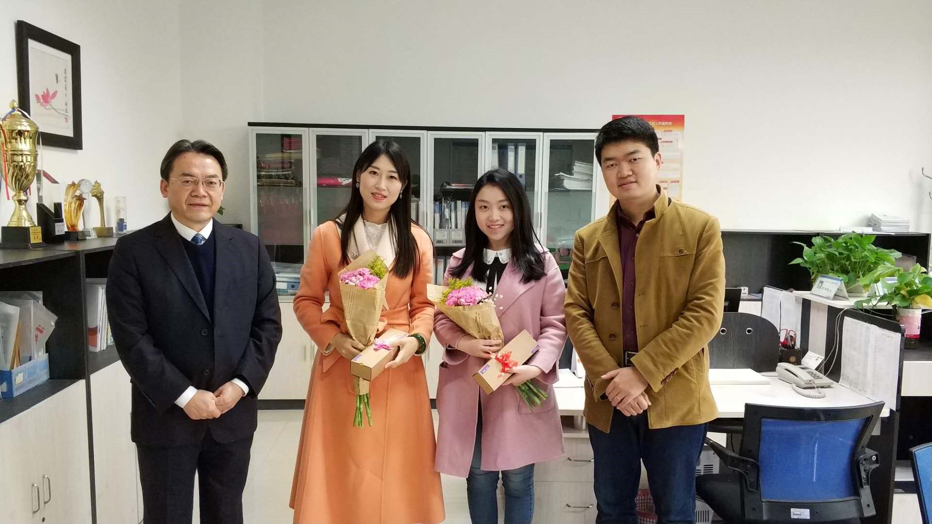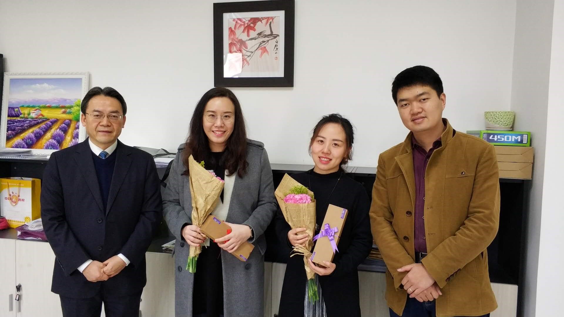 2018年3月8日上午必赢776net紫云楼309办公室,各位老师正在忙碌着为留学生答疑解难。“不好意思,打扰一下”,办公室门被有礼貌地敲开,让人意想不到的是,走进门口的是手捧鲜花的刘猛书记!