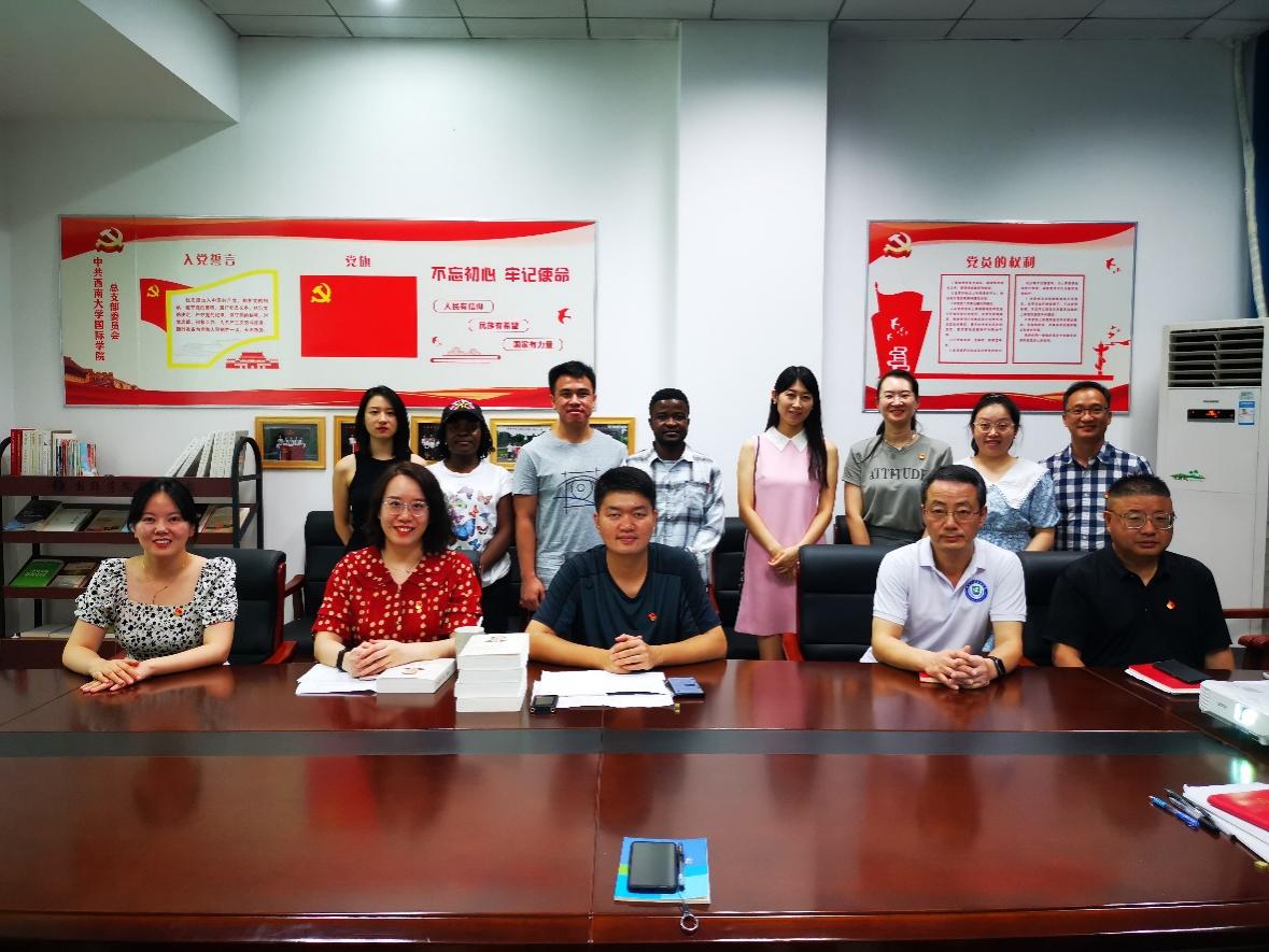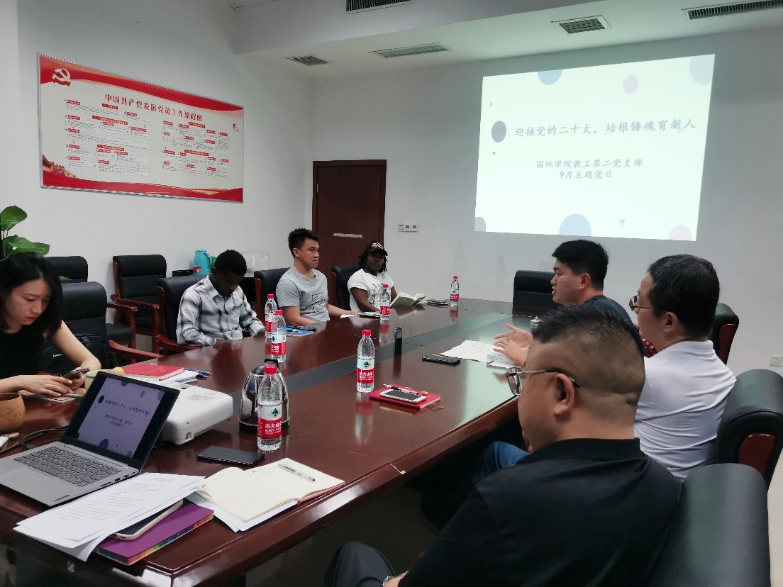 9月19日下午,教工第二党支部在学院304会议室召开“迎接党的二十大 培根筑魂育新人”主题党日活动,来自刚果布、印度尼西亚、喀麦隆的三名留学生受邀分享对缙云山扑火感人事迹的心得体会。