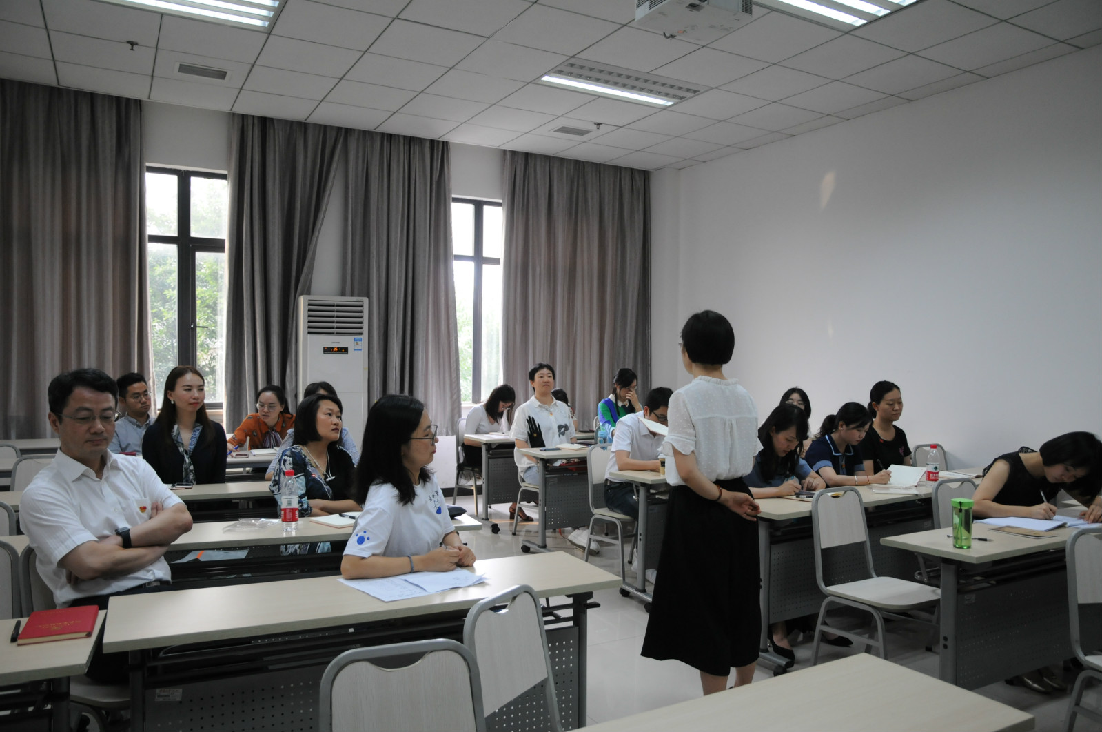 学院党总支书记刘猛总结讲话。他首先对各位同志的发言予以肯定,随后也与各位同志分享了自己的工作与学习心得。假期期间。刘猛书记与学院领导、老师前往泰国探望了海外实习的汉硕生,中国汉硕生受到极大鼓舞,表示会将工作的压力与老师们的期望化作今后工作的动力。同时,刘猛书记还提到了“泰北校友会”上一些感人事迹,并以此激励在座各位同志坚守初心,为母校争光,做“汉推践行者”。最后,刘猛书记还向大家推荐了一档电视政论节目《这就是中国》,鼓励大家观看学习,了解中国动态,时刻维护中国形象,积极为中国发声。