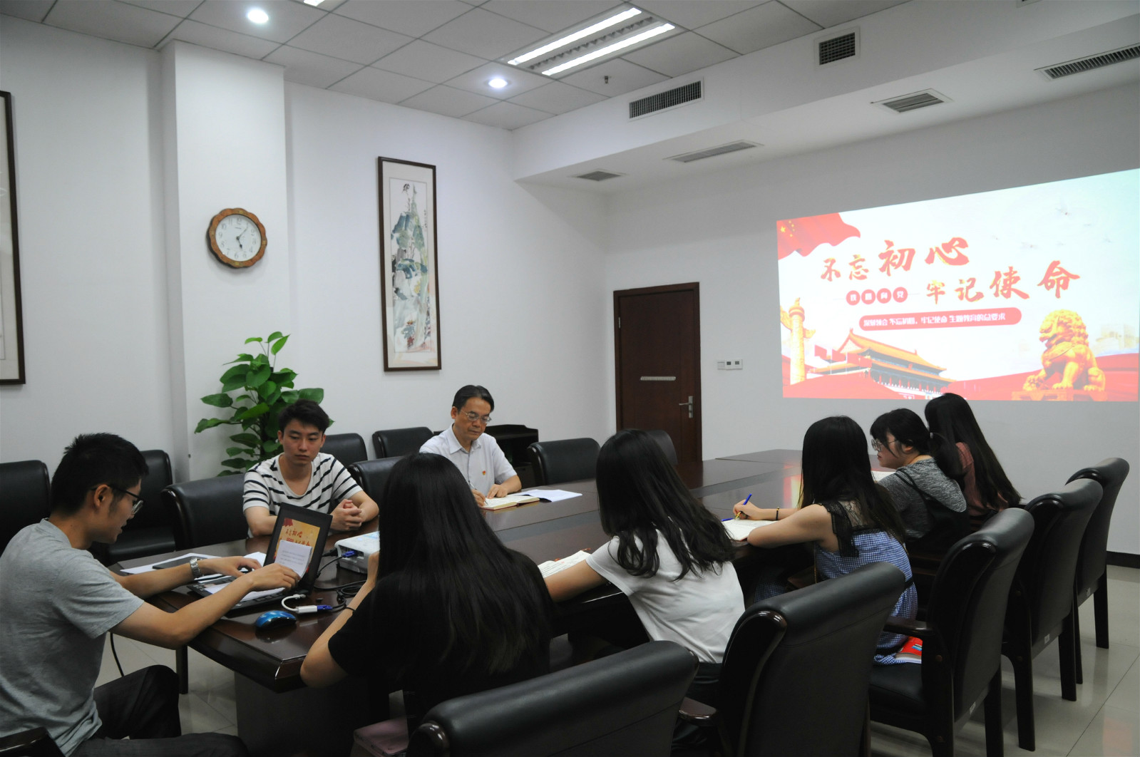 首先,支部书记王湛明带领大家学习了以“寻初心印记,践使命担当”为主题的党课,确保假期党员学习教育不断线,进一步强化党员的责任意识、宗旨意识。