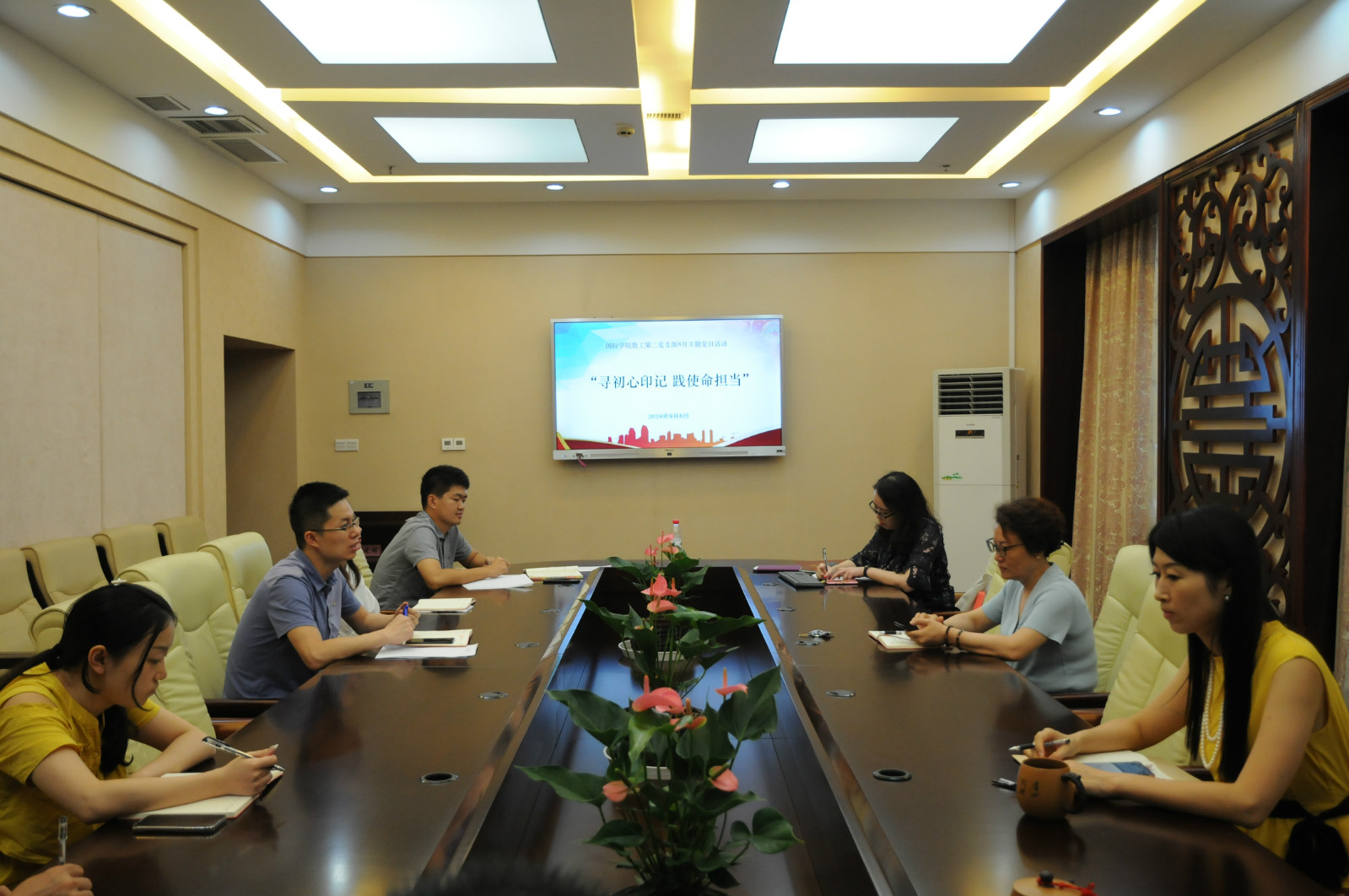 根据学校党委的统一部署,必赢776net党总支于2019年9月6日下午四点半开展了“寻初心印记,践使命担当”主题党日活动。教工一、二支部,研究生第二党支部分别在紫云楼312教室、签约室、304会议室开展了活动。