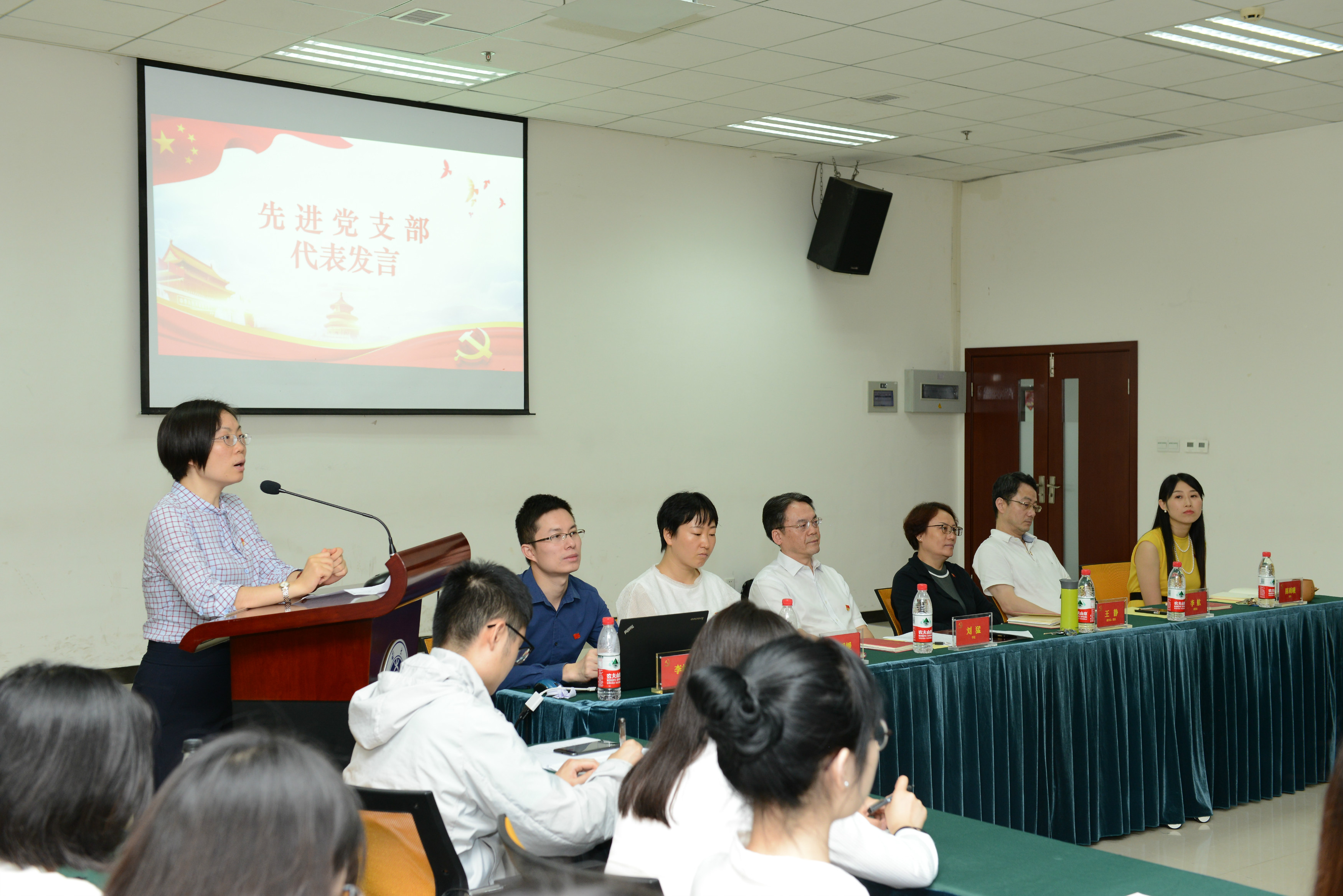 优秀党员代表杨昆同志、优秀党务工作者代表许桐同志发表了获奖感言。他们都深深领悟到了党就是信仰,党就是方向,在党的指引下,无论个人还是集体都会成长发展得更好。先进党支部代表邱睿同志就基层党支部建设发表了自己的观点。她提出了“务实、温度、创新”的发展理念,用翻转课堂进行党员教育,用项目管理的方式开展活动,用新媒体加强交流的效率,关注师生心理健康、精神成长,力争将教工第一党支部建设成符合学生、教师、时代要求的新型党支部。