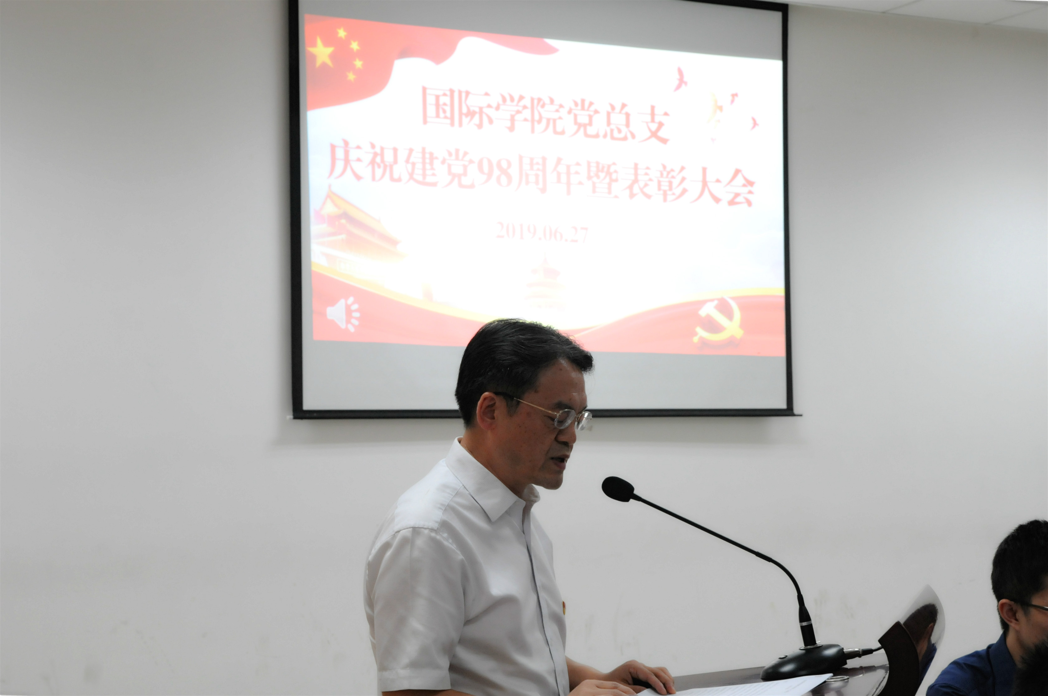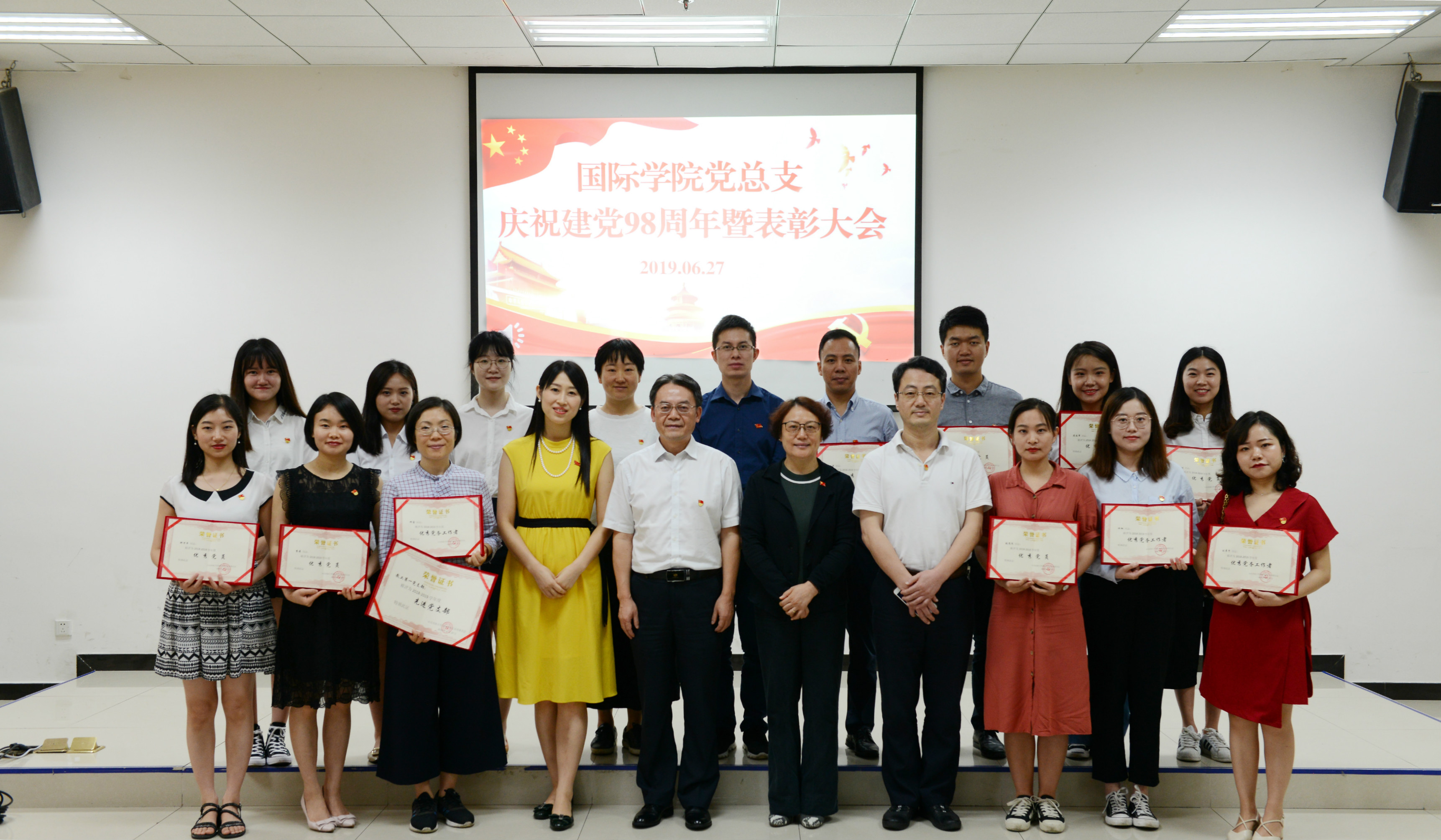 2019年6月27日下午3:00,必赢776net党总支在紫云楼317室隆重召开庆祝建党98周年暨表彰大会。学院党总支委员、全体党员参加大会,会议由党总支委员李林泽同志主持。