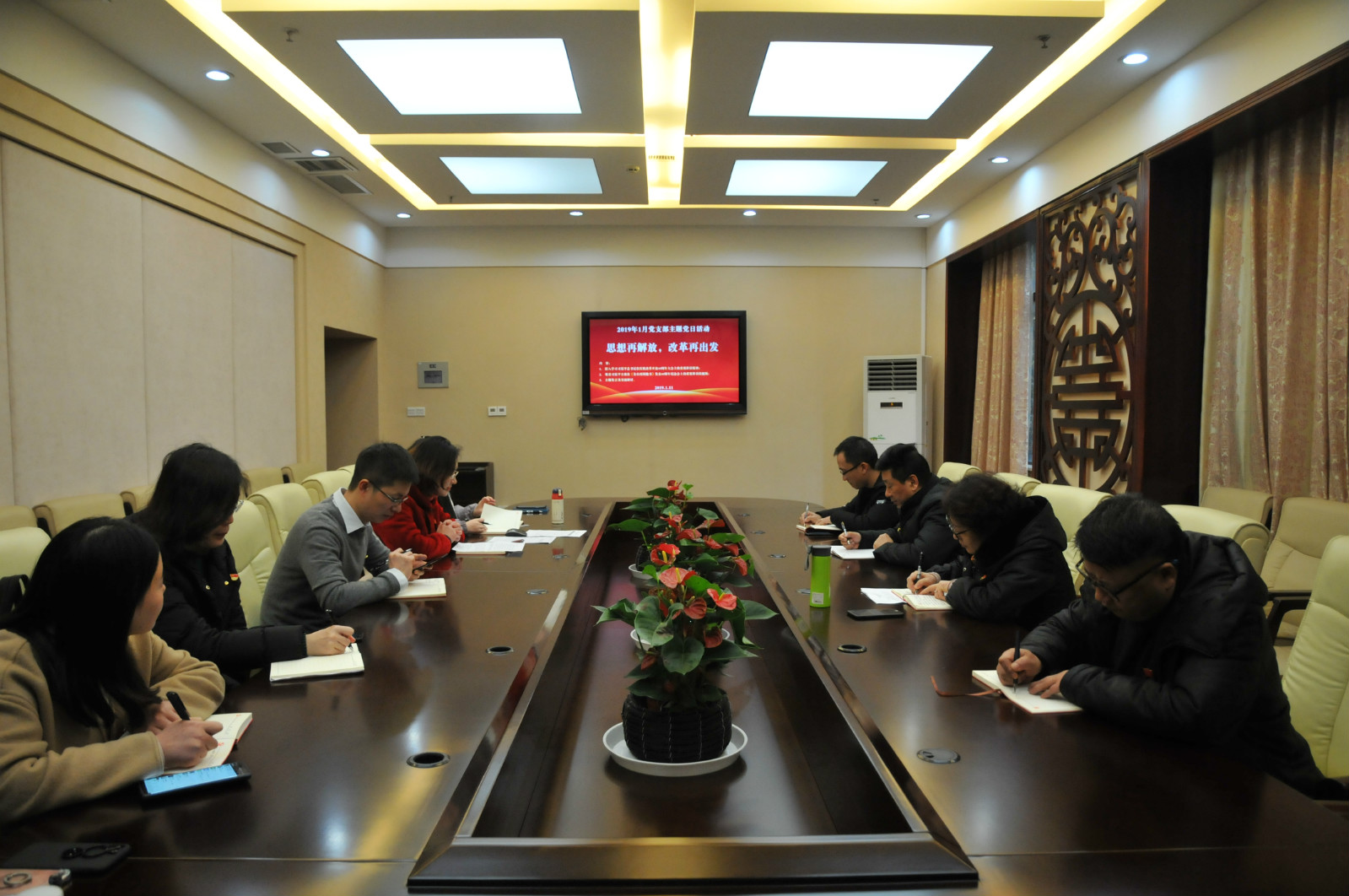 2019年1月11日下午2:30,必赢776net教工第一党支部在316党员活动室开展以“思想再解放,改革再出发”为主题的党日活动。