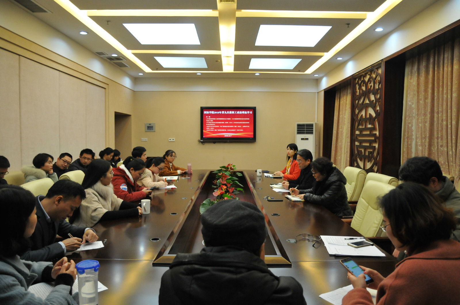 2018年12月7日下午3:00,必赢776net全体教职工在紫云楼签约室开展本年度第九次政治理论学习活动。会议由刘猛书记主持。