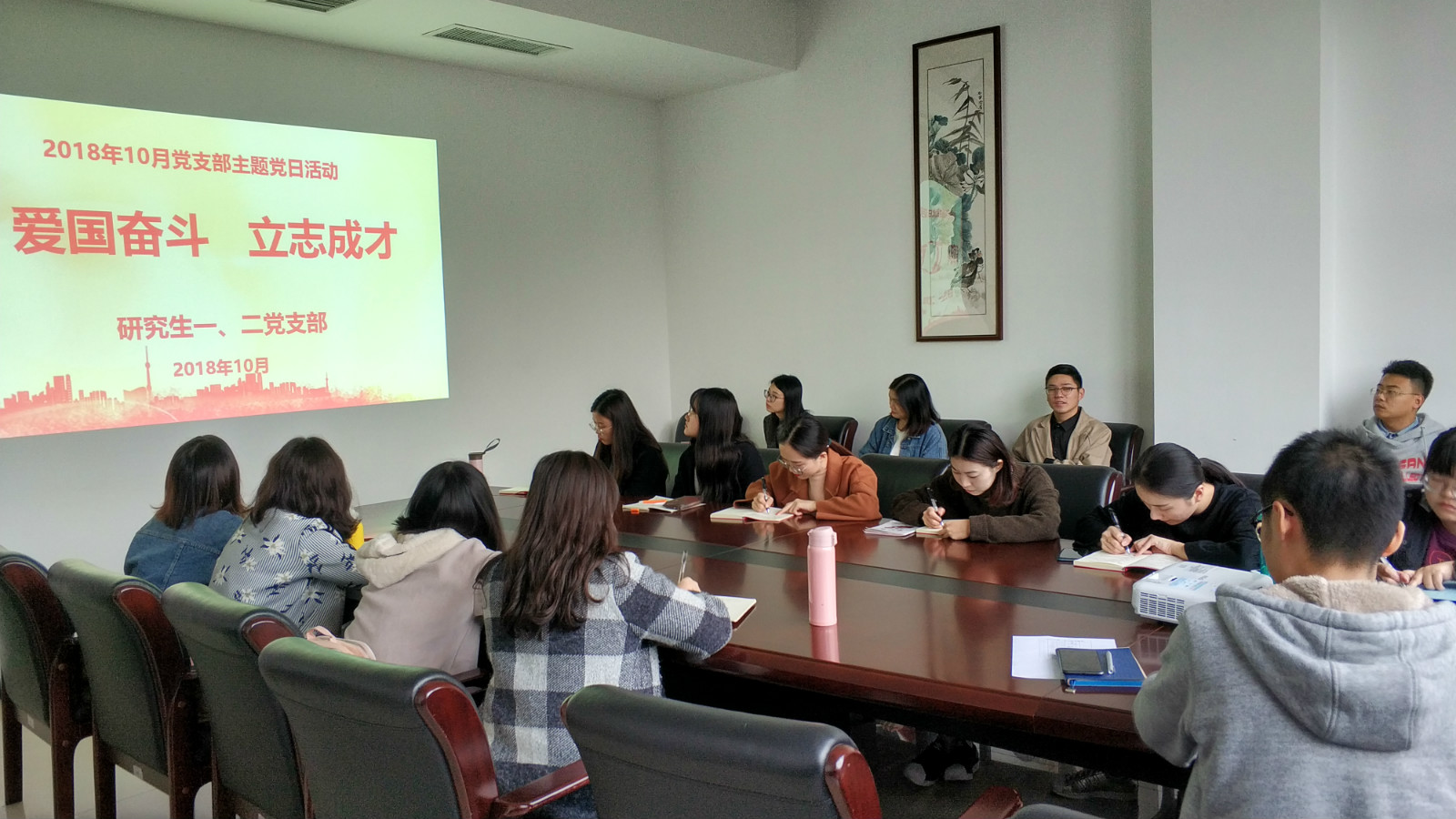 10月16日下午3点,必赢776net研究生支部在紫云楼304会议室开展了主题为“爱国奋斗,立志成才”的主题当日活动。会议由第二党支部书记王湛明主持,宣传委员许桐主讲。