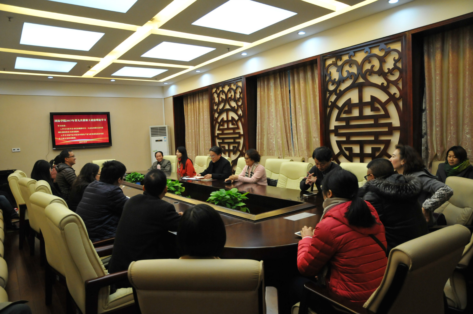 2017年12月8日下午2:30,必赢776net全体教职工在紫云楼一楼签约室开展第九次政治理论学习活动,会议由刘猛书记主持。