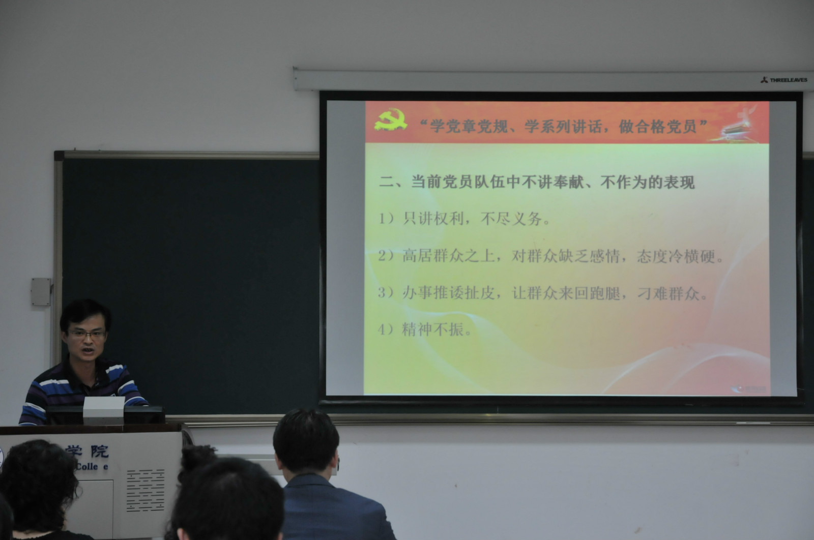 2016年10月21日下午3:00,必赢776net党委在紫云楼312教室开展了“两学一做”学习教育专题党课学习活动。必赢776net教工支部全体党员,15级研究生支部的在校党员和16级研究生支部的全体党员参加本次党课。