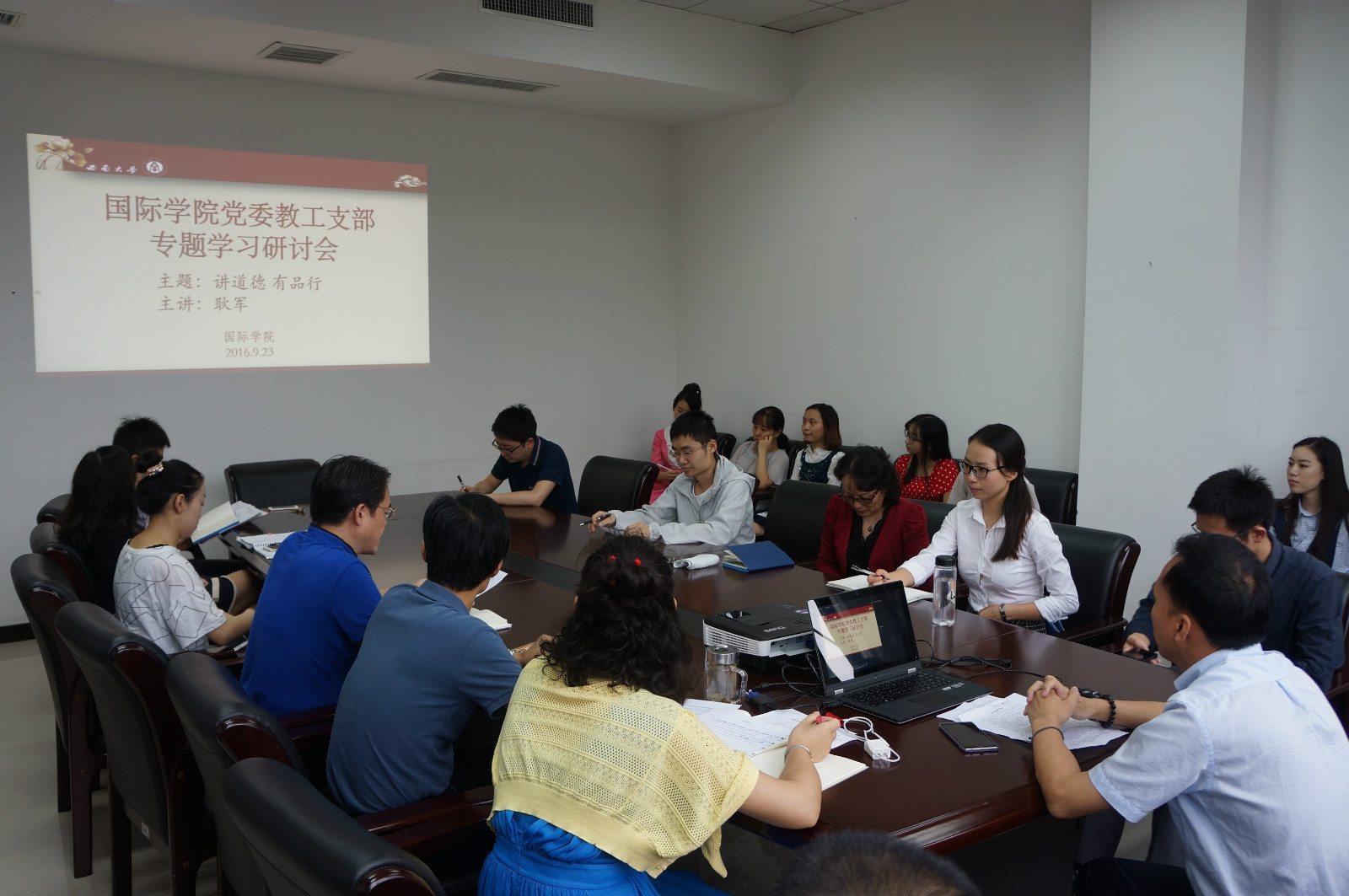 2016年9月23日下午3:00,必赢776net党委教工支部在紫云楼304会议室召开专题学习研讨会,16级研究生支部的全体党员以及入党积极分子列席会议。会议由教工支部书记代远鸿主持。