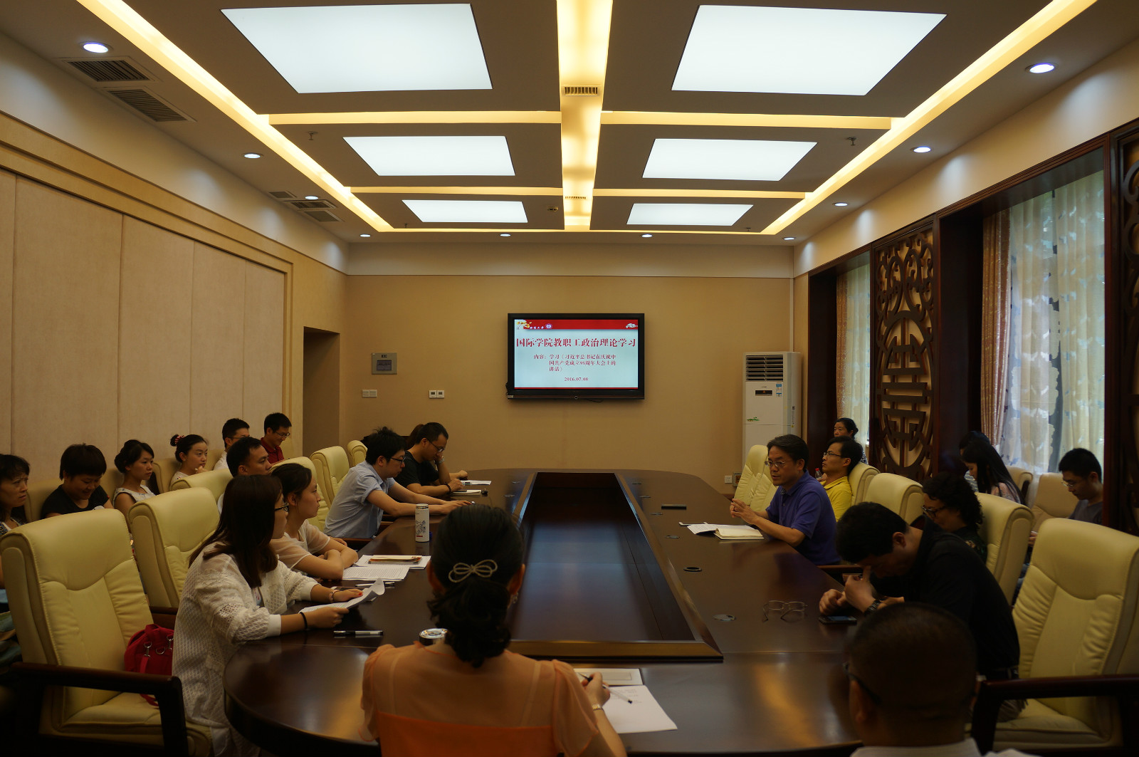 2016年7月8日下午2:30必赢776net在紫云楼一楼签约室开展政治理论学习。在党总支书记刘猛的主持下,学院全体教职工集体学习了《习近平总书记在庆祝中国共产党成立95周年大会上的讲话》。
