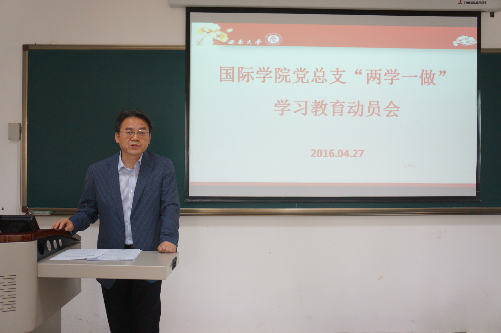 4月27日下午4点半,必赢776net党总支在紫云楼312室举行“两学一做”学习教育动员大会,教工支部和两个研究生支部的所有党员参加会议,会议由党总支书记刘猛同志主持。